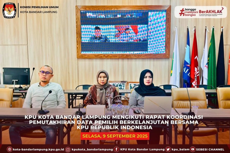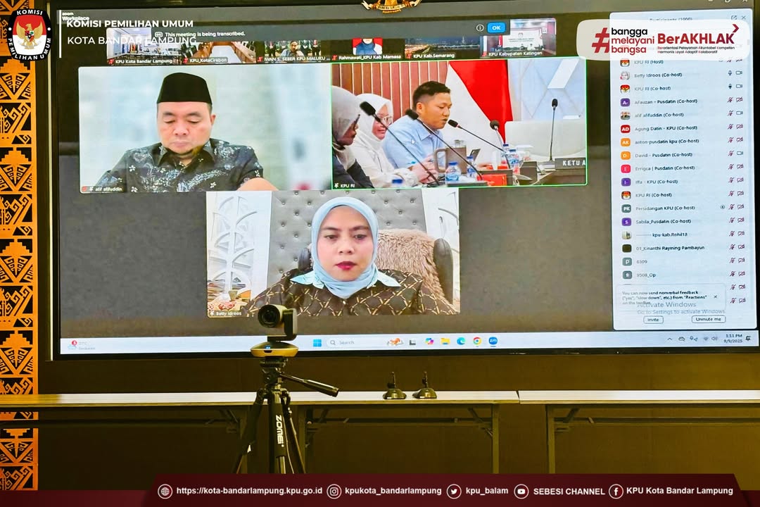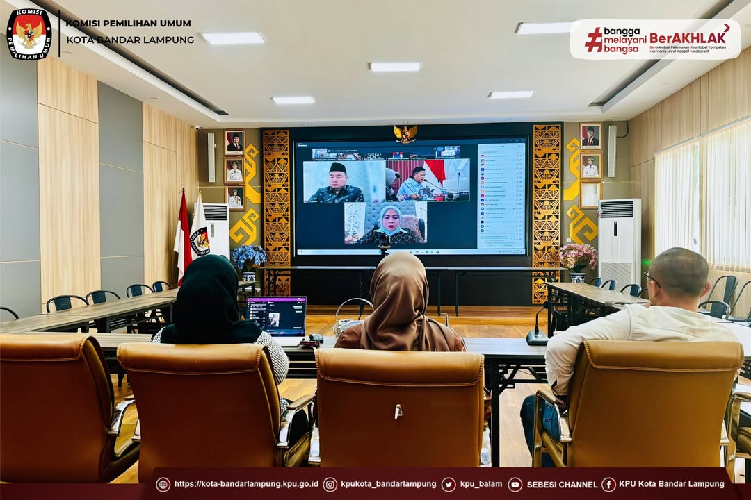 Komisi Pemilihan Umum (KPU) Kota Bandar Lampung mengikuti Rapat Koordinasi Pemutakhiran Data Pemilih Berkelanjutan Bersama KPU RI. bertempat di Aula KPU Kota Bandar Lampung Selasa, (09/09/25).
