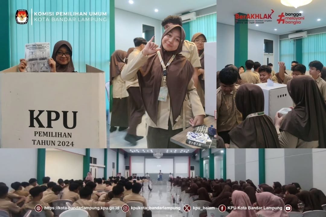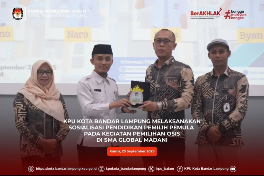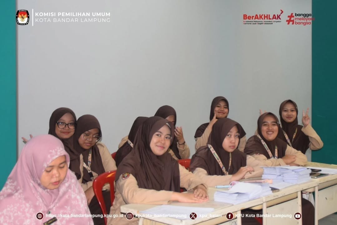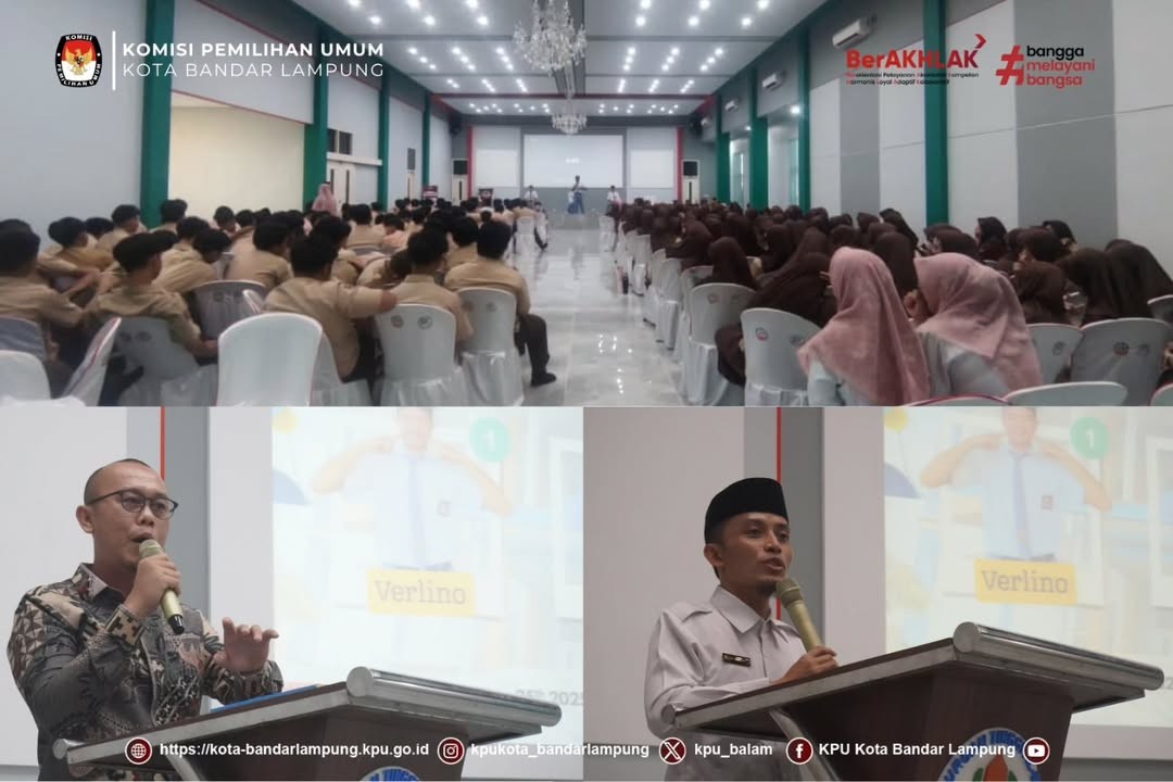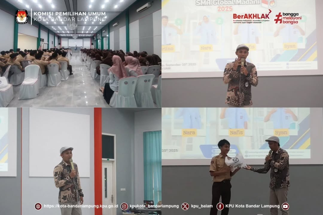 KPU Kota Bandar Lampung melaksanakan Sosialisasi pendidikan pemilih pemula di SMA Global Madani Bandar Lampung pada momen PEMIRA OSIS, Kamis 25 September 2025.