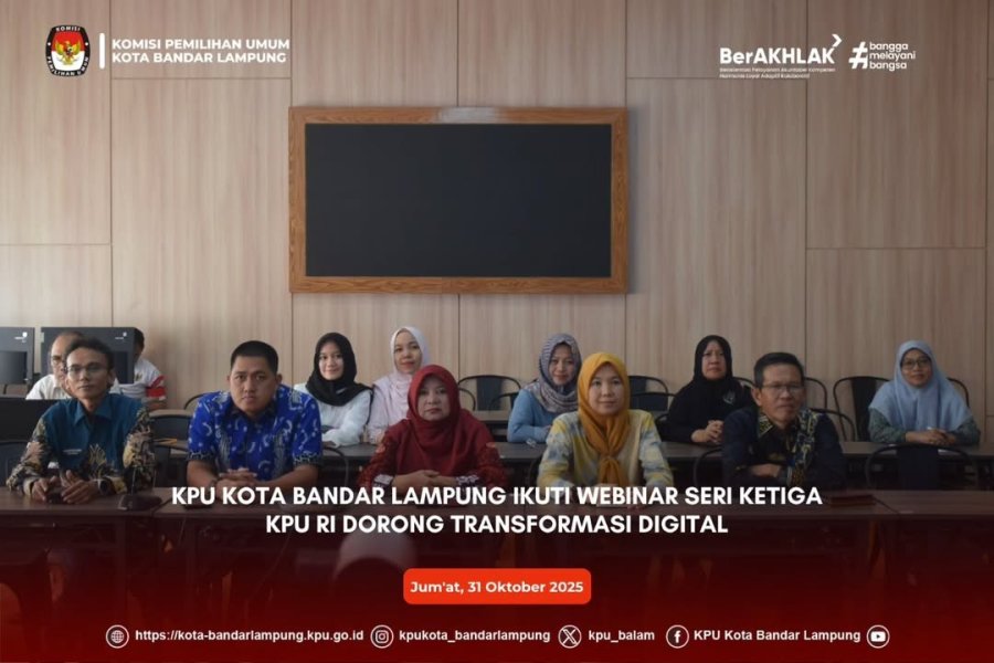 KPU Kota Bandar Lampung mengikuti kegiatan Webinar Series Ketiga yang diselenggarakan oleh KPU RI dalam rangka mendorong pemanfaatan teknologi informasi serta mendukung transformasi digital di lingkungan KPU.