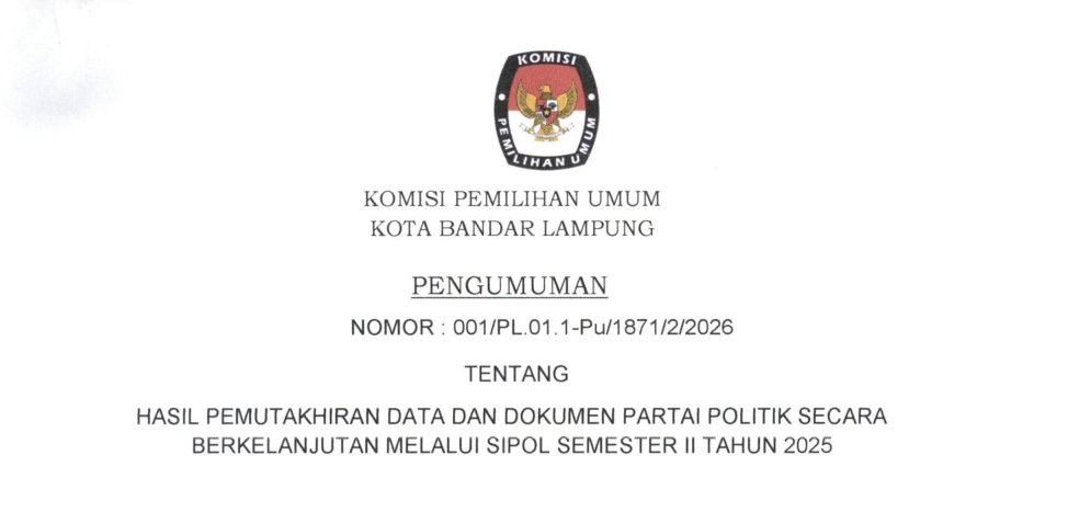 Pengumuman Hasil Pemutakhiran Data Partai Politik Tahun 2025 Semester 2