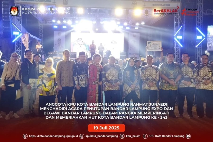Anggota Komisi Pemilihan Umum Kota Bandar Lampung Rahmat Junaedi menghadiri Acara Penutupan Bandar Lampung EXPO dan Begawi Bandar Lampung dalam rangka memperingati
