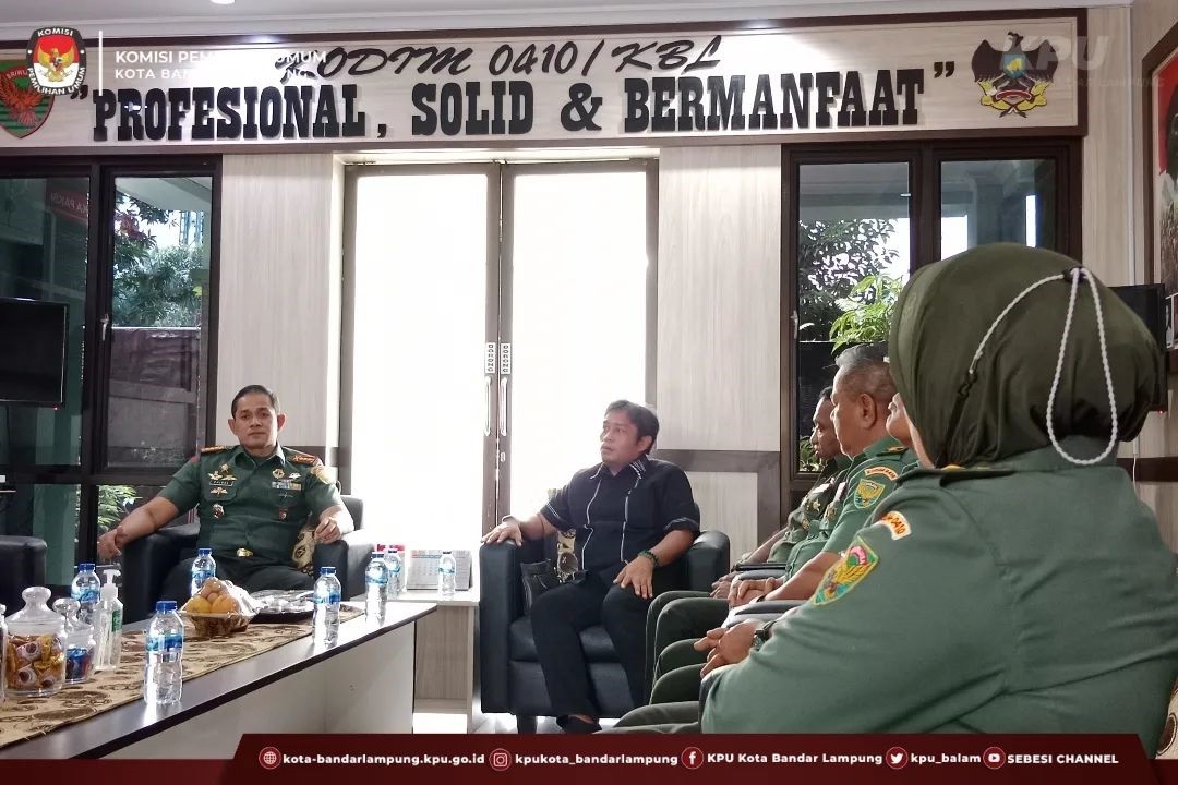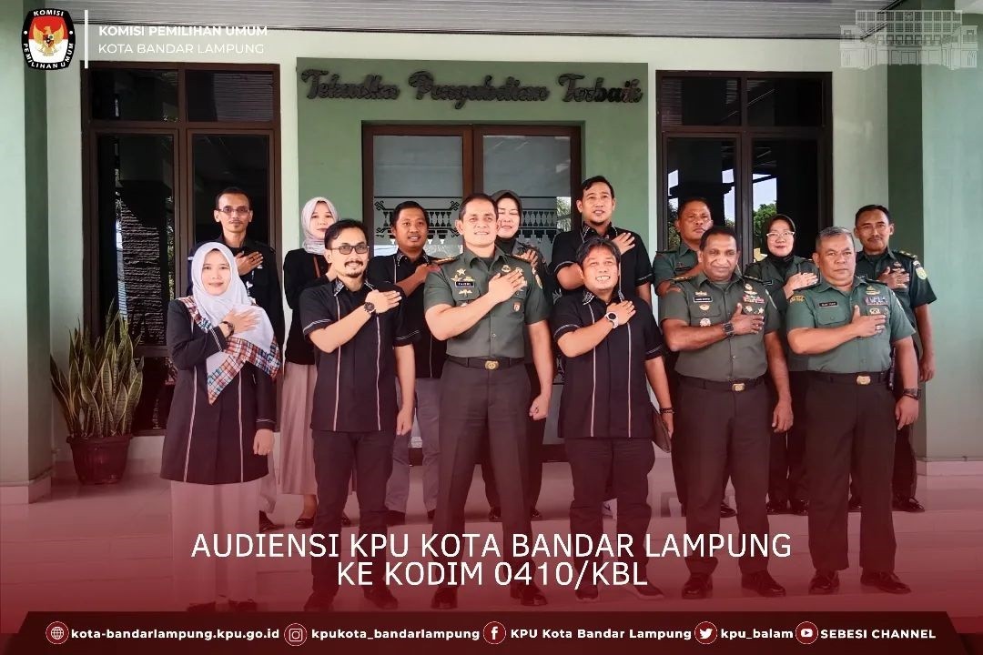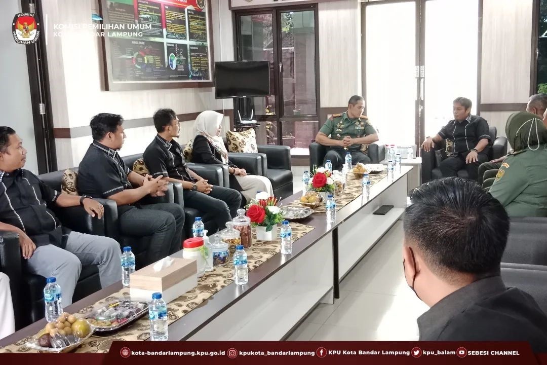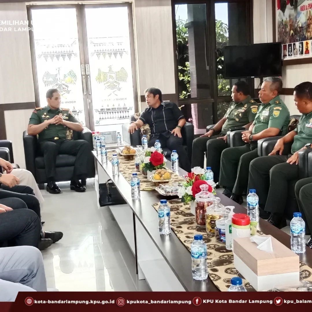 Ketua KPU Kota Bandar Lampung dan Anggota melaksanakan kegiatan audiensi dengan KODIM 0410/KBL, Rabu(29/6/2022). Agenda kunjungan tersebut diawali dengan Penyampaian regulasi dan jadwal tahapan yang dilaksanakan KPU Kota Bandar Lampung.