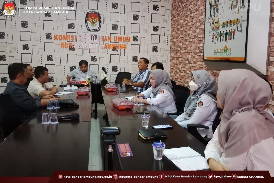 KPU Kota Bandar Lampung menerima audiensi Partai Solidaritas Indonesia (PSI), Kamis (14/7/2022). Ketua, Sekretaris, dan Bendahara Partai Solidaritas Indonesia (PSI) diterima oleh Ketua Anggota, Sekretaris dan jajaran Kepala Sub Bagian KPU Kota Bandar Lampung. Nijar Selaku Ketua DPD PSI Kota Bandar Lampung menyampaikan maksud kedatangannya adalah selain bersilaturahmi atas kepengurusan yang baru, juga ingin mendapatkan penjelasan Tahapan Verifikasi Parpol dalam rangka persiapan hal-hal yang perlu dipenuhi pada kegiatan tersebut sesuai ketentuan yang ditetapkan.