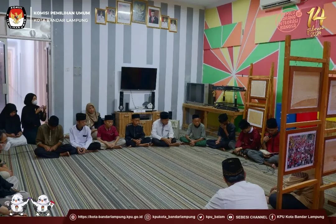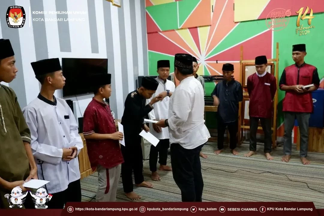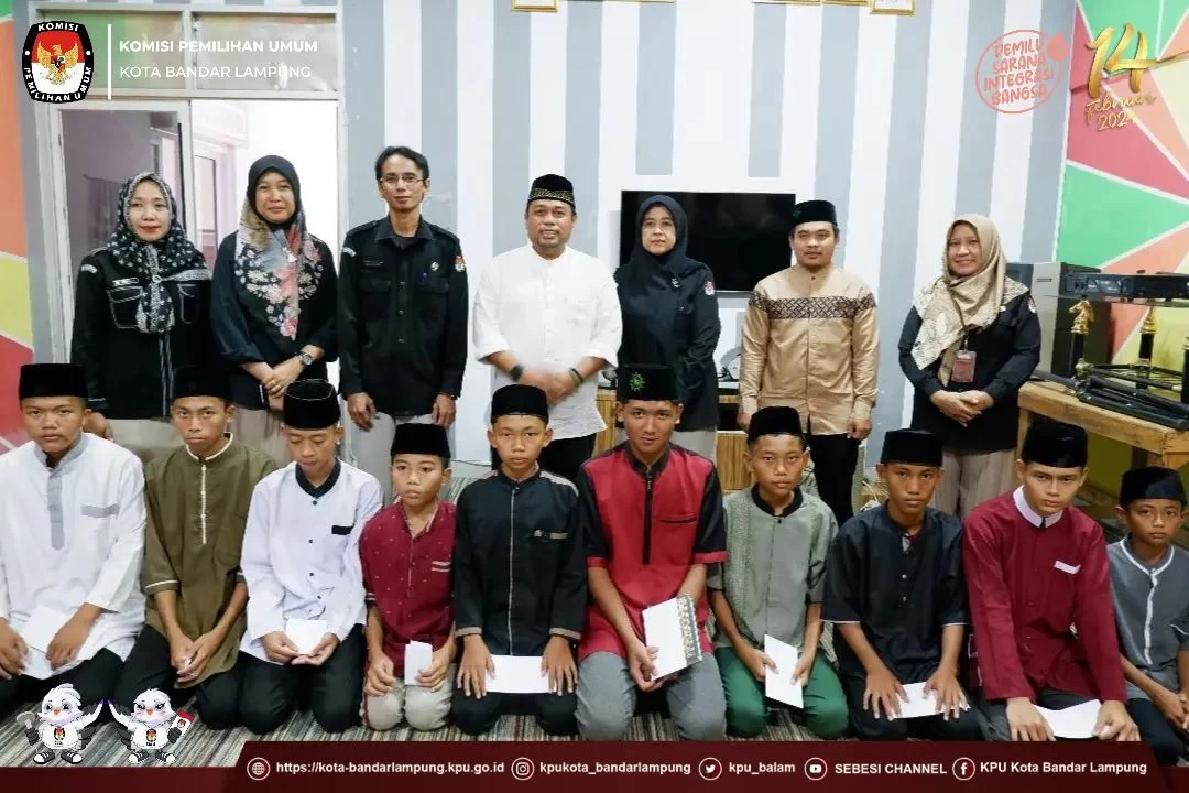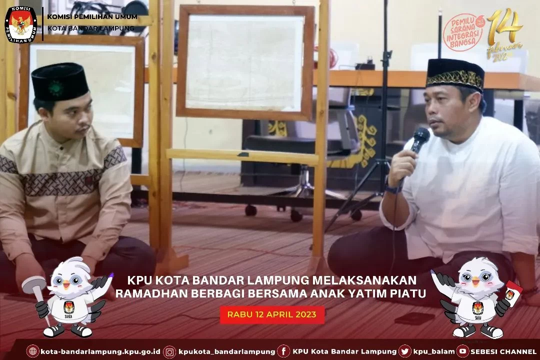 Komisi Pemilihan Umum (KPU) Bandar Lampung memberikan santuan kepada 10 anak yatim piatu dari Panti Asuhan Budi Mulia. Acara berlangsung di ruang Helpdesk Kantor KPU Bandar Lampung, Rabu (12/4/2023).