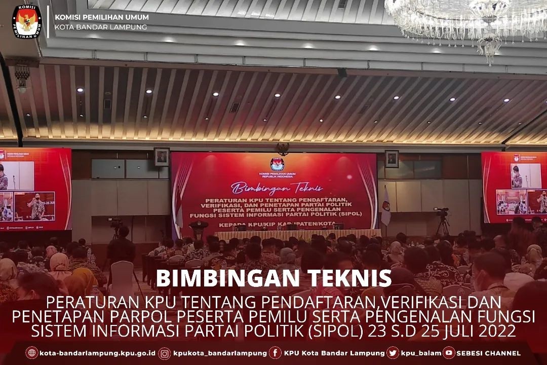 Kegiatan Bimtek yang dihadiri peserta dari 34 KPU Provinsi dan 514 KPU Kabupaten/ Kota dan terbagi di 3 Lokasi kegiatan yakni di Hotel Grand Mercure harmoni, Hotel Harris Vertu Harmoni dan Hotel Grand Sahid Jakarta. kegiatan tersebut dibuka oleh Ketua KPU RI Hasyim Asy'ari dari Ballroom Hotel Sahid jakarta, dan dihadiri juga Anggota, setjen KPU RI dan Jajaran Pejabat struktural dan Fungsional Sekretariat KPU RI. Dalam arahannya Hasyim Asy'ari menyampaikan agar Penyelenggara di tingkat Provinsi, Kabupaten/Kota mampu memahami Ketentuan dalam regulasi yang telah ditetapkan. Khususnya kegiatan Tahapan pendaftaran dan Verifikasi Parpol yang akan dilaksanakan mulai Tanggal 29 Juli 2022 mendatang. Selanjutnya, beliau menambahkan bahwa dengan memahami ketentuan regulasi yang ditetapkan diharapkan memiliki pemahaman dan presepsi yang sama atas tugas, fungsi dan wewenang peenyelenggara Pemilu dalam melaksanakan Tahapan kegiatan yang dilaksanakan.