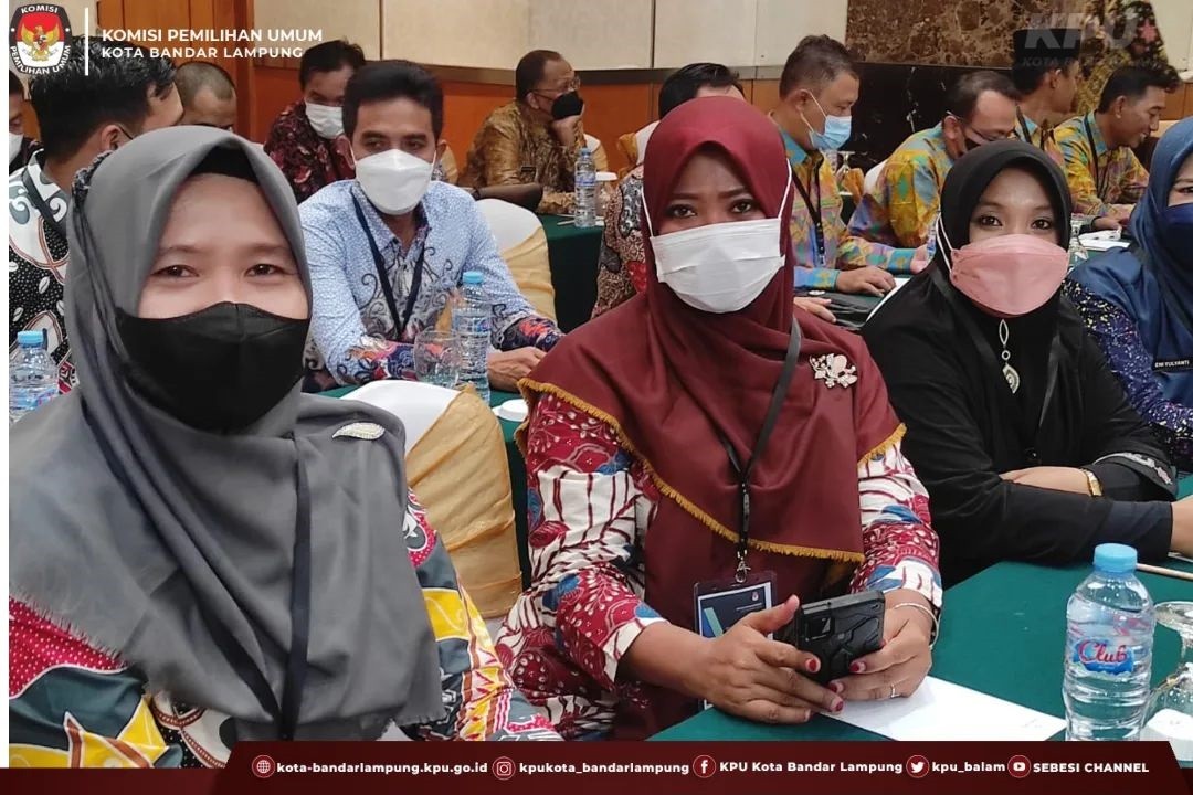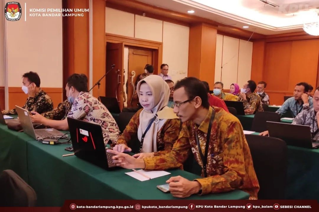 Ketua Divisi Teknis Penyelenggara Pemilu, Fery Triatmojo, Ketua Divisi Perencanaan, Data dan Informasi, Ika Kartika, Kepala Sub Bagian Teknis Penyelennggara Pemilu, partisipasi dan Hubungan Masyarakat Badarudin Amir dan Operator SIPOL Eni Yulyanti, mengikuti Bimbingan Teknis Peraturan KPU Tentang Pendaftaran, Verifikasi dan Penetapan Parpol Peserta Pemilu serta Pengenalan Fungsi Sistem lnformasi Partai Politik (SIPOL) yang diselenggarakan KPU RI untuk tingkat Kabupaten/Kota sejak 23/07/2022 hingga 25/07/2022.