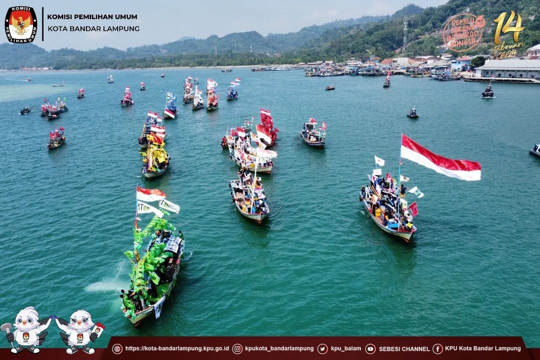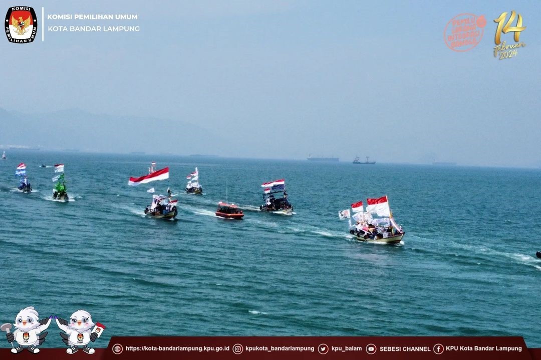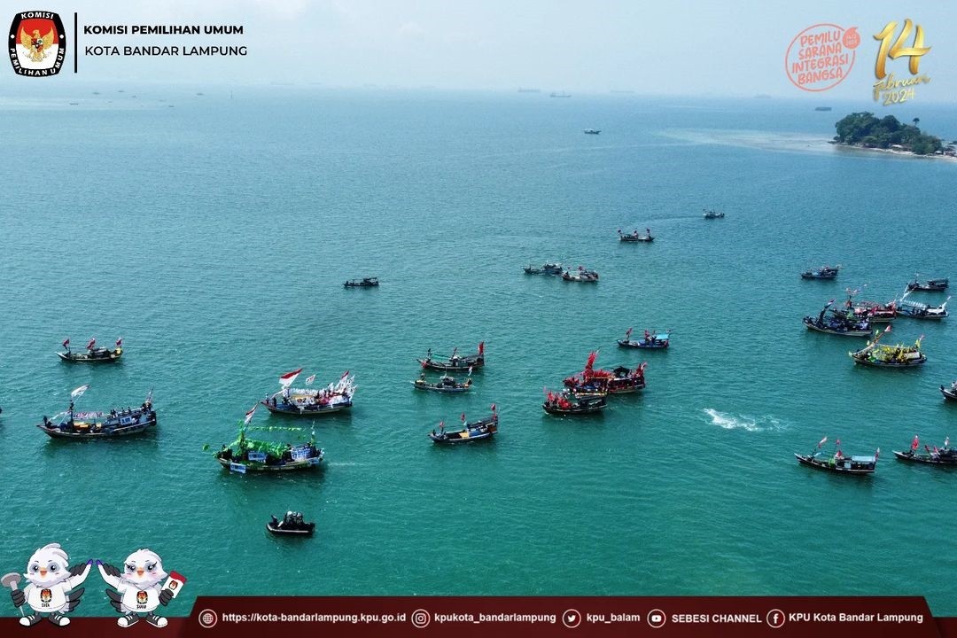 Memasuki hari ke 4 Pelaksanaan Rangkaian kirab di Kota bandar Lampung, KPU Kota Bandar Lampung menyelenggarakan kegiatan sosialisasi Pengenalan Partai Politik Peserta Pemilu Tahun 2024 kepada masyarakat pesisir Kota Bandar Lampung dengan menggelar kegiatan Fesival Perahu Demokrasi susur pesisir teluk Lampung, Kamis (31/08/2023).