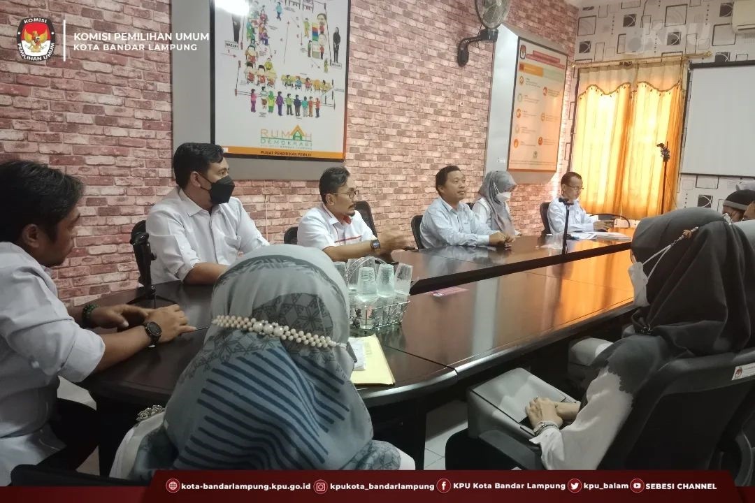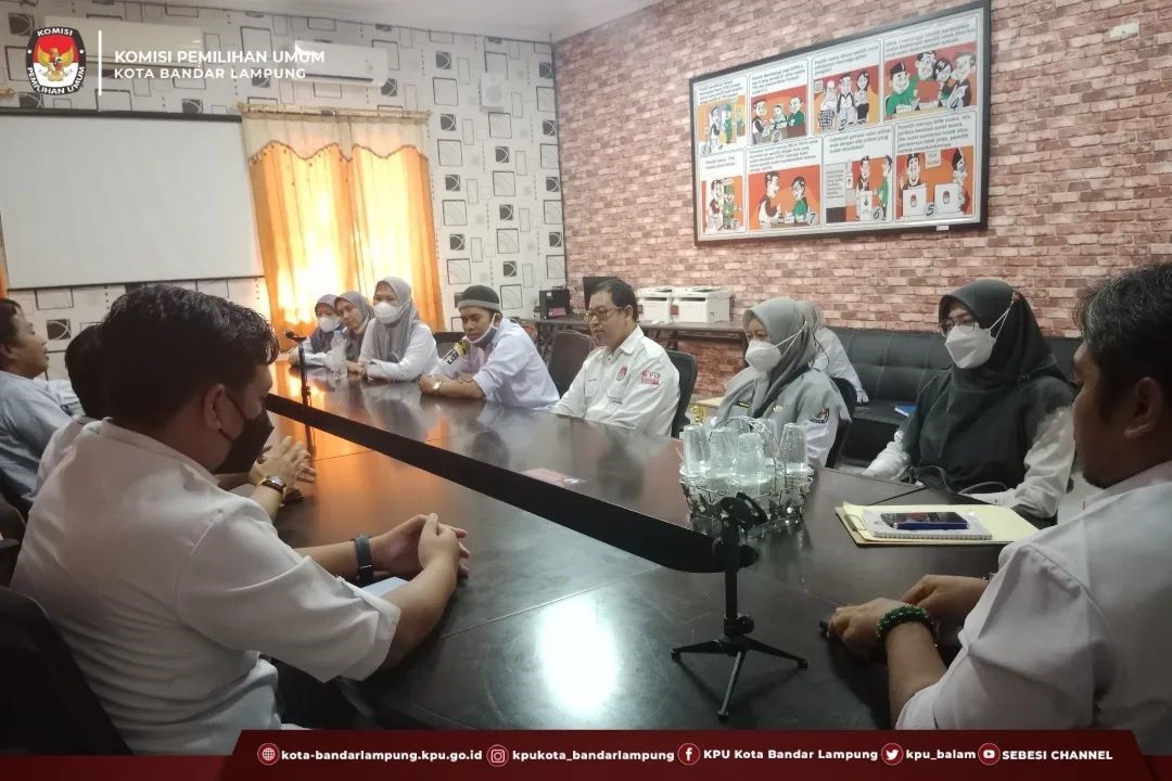 Ketua dan Anggota KPU Kota Bandar Lampung, Sekretaris dan Jajaran Kasubbag, Senin 27/06/2022 menerima Kedatangan ASN KPU yang menempuh Pendidikan S-2 Tata Kelola Pemilu di Universitas Lampung. 7 orang Mahasiswa Tata Kelola tersebut berasal dari beberapa Satker KPU untuk selanjutnya turut membantu KPU Kota Bandar Lampung dalam melaksanakan Tahapan Pemilu sesuai dengan latar belakang kemampuan yang dimiliki dan penerapan ilmu yang didapat selama menjalankan tugas belajar.