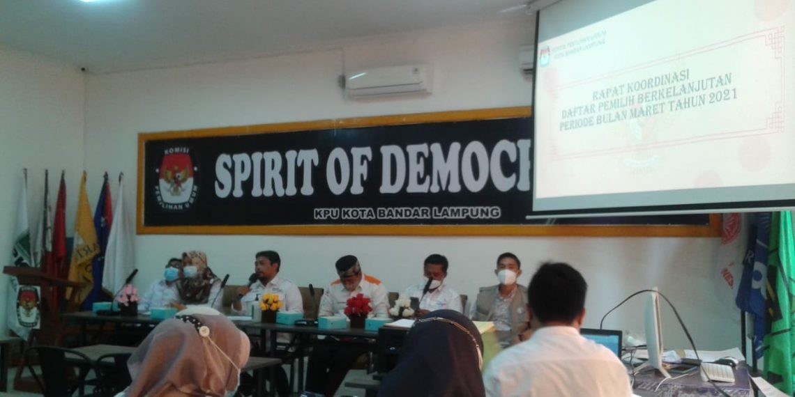 BANDAR LAMPUNG -- KPU Kota Bandar Lampung menggelar rapat koordinasi mengenai daftar pemilih berkelanjutan periode Maret Tahun 2021 di Aula KPU setempat, Senin (5/4/2021).