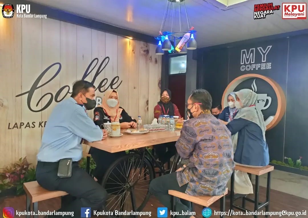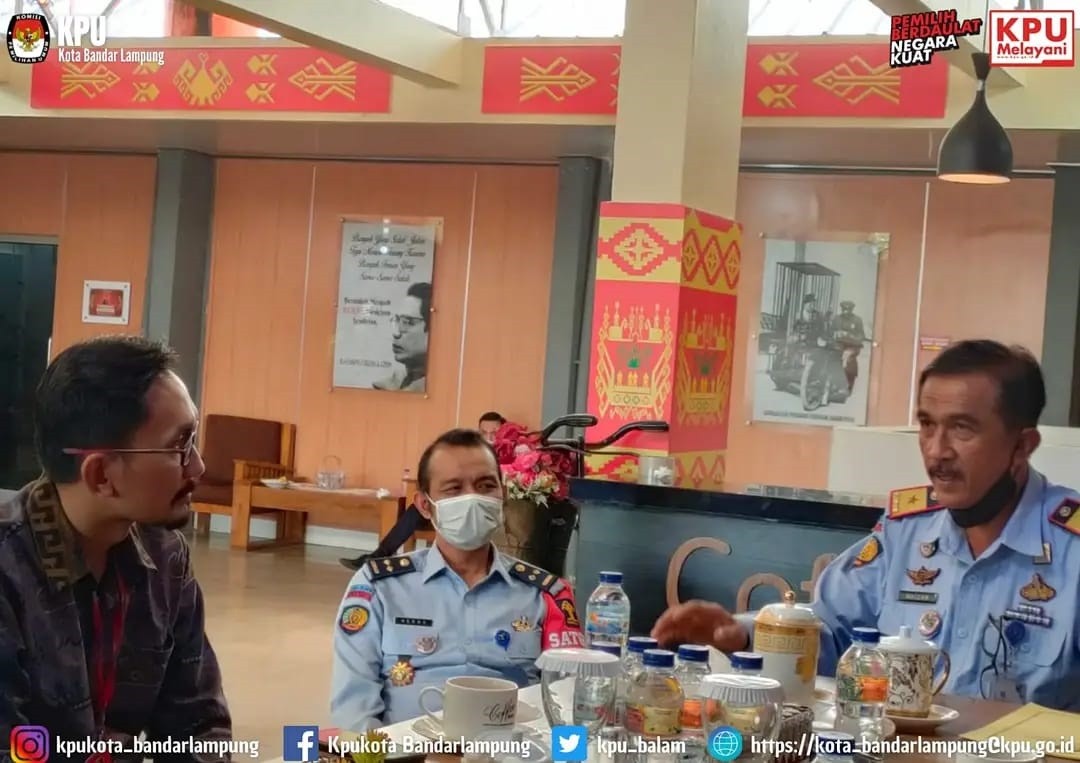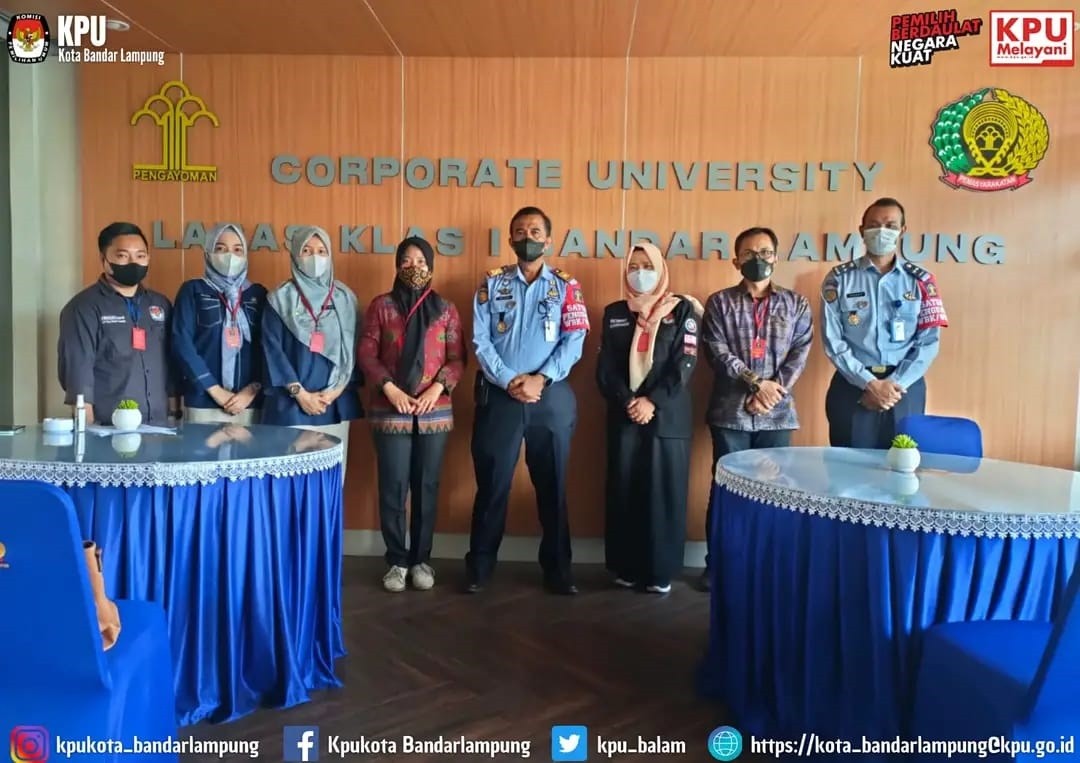 Selasa, 16/11 KPU Kota Bandar Lampug bersama Bawaslu Kota Bandar Lampung mengunjungi Lapas Kelas 1 Bandar Lampung yang berlokasi di Jl. Pramuka No 12, Rajabasa Kota Bandar Lampung. Kedatangan KPU dan Bawaslu Kota Bandar Lampung diterima langsung oleh Kepala Lapas Kelas 1 Bandar Lampung Bapak Maizar, Bc.IP., S.Sos., M.Si.