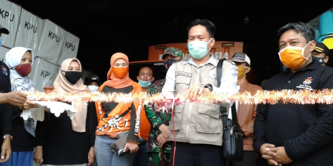 BANDAR LAMPUNG — KPU Kota Bandar Lampung melakukan pelepasan distribusi kotak suara dan kelengakapan TPS pada pemilihan walikota dan wakil walikota Bandar Lampung di gudang KPU, Jalan Raden Saleh Raya, Kedaton, Minggu (6/12/2020).