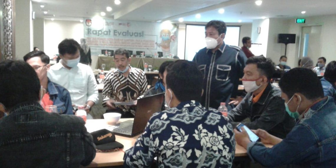BANDAR LAMPUNG — KPU Kota Bandar Lampung melaksanakan rapat evaluasi daftar pemilih Kota Bandar Lampung usai pelaksanaan Pilkada Tahun 2020 di Swissbel Hotel, Selasa (22/12/2020).