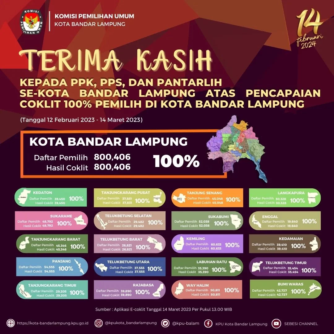 Semoga Data Pemilih di Kota Bandar Lampung menjadi lebih Akurat, Mutakhir dan Berkualitas.