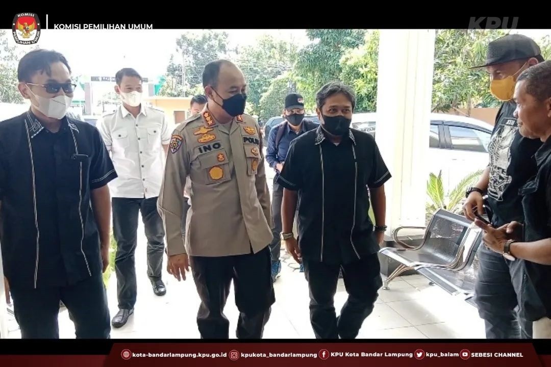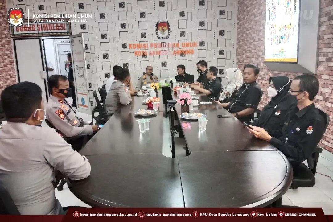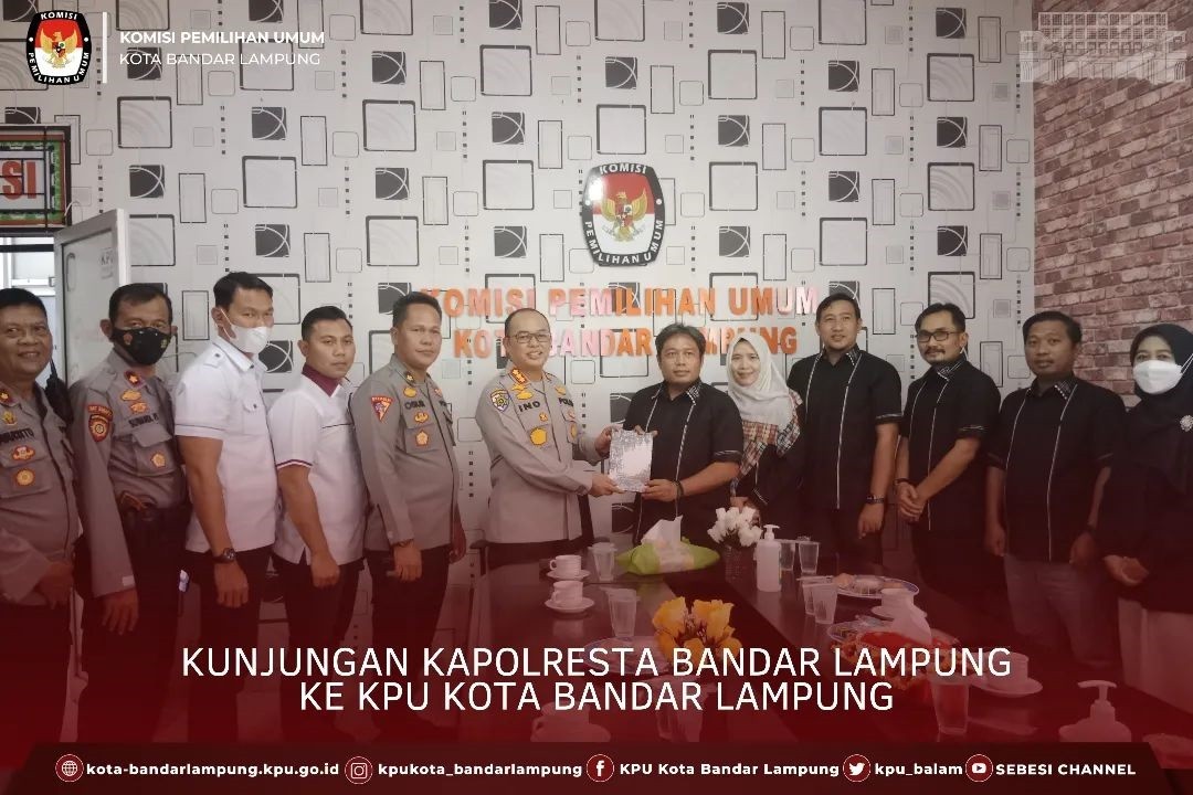 Ketua dan Anggota KPU Kota Bandar Lampung menerima kunjungan Kapolresta Bandar Lampung didampingi sekretaris dan Jajaran Kasubbag KPU Kota Bandar Lampung, Rabu (29/06/2022). Kedatangan Kapolresta Bandar Lampung merupakan bentuk kelanjutan atas audiensi yang dilaksanakan oleh KPU Kota Bandar Lampung pada selasa 28/06/2022 yang melakukan kunjungan ke Mapolresta Bandar Lampung.