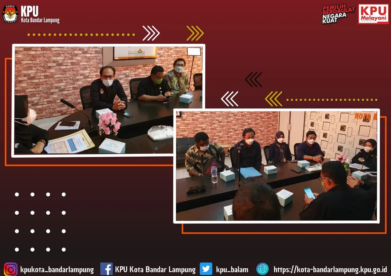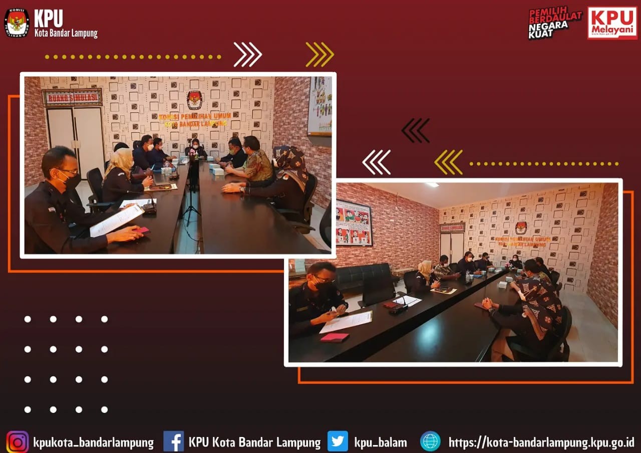Rabu, 22/11 KPU Kota Bandar Lampung menerima kunjungan Tim Monitoring dan Evaluasi KPU RI, dalam rangka melaksanakan tugas untuk memonitoring dan mengevaluasi pelaksanaan kegiatan dan anggaran tahun 2021 di KPU Provinsi dan KPU Kab/Kota.