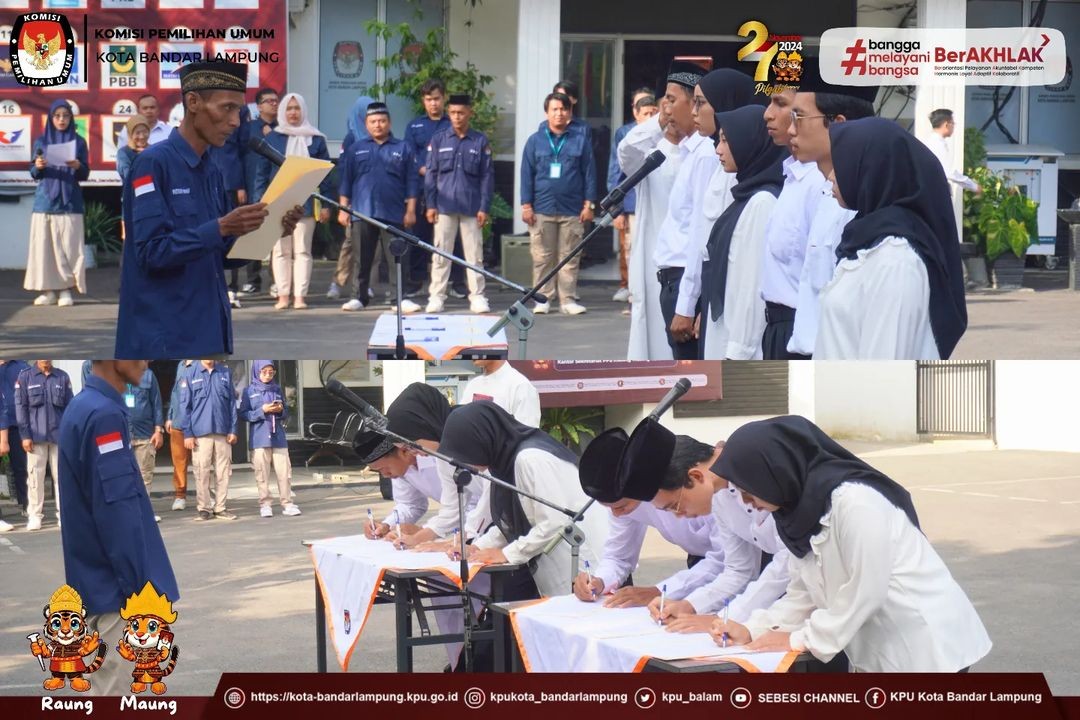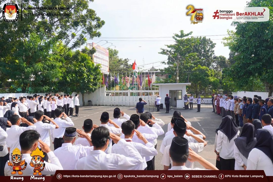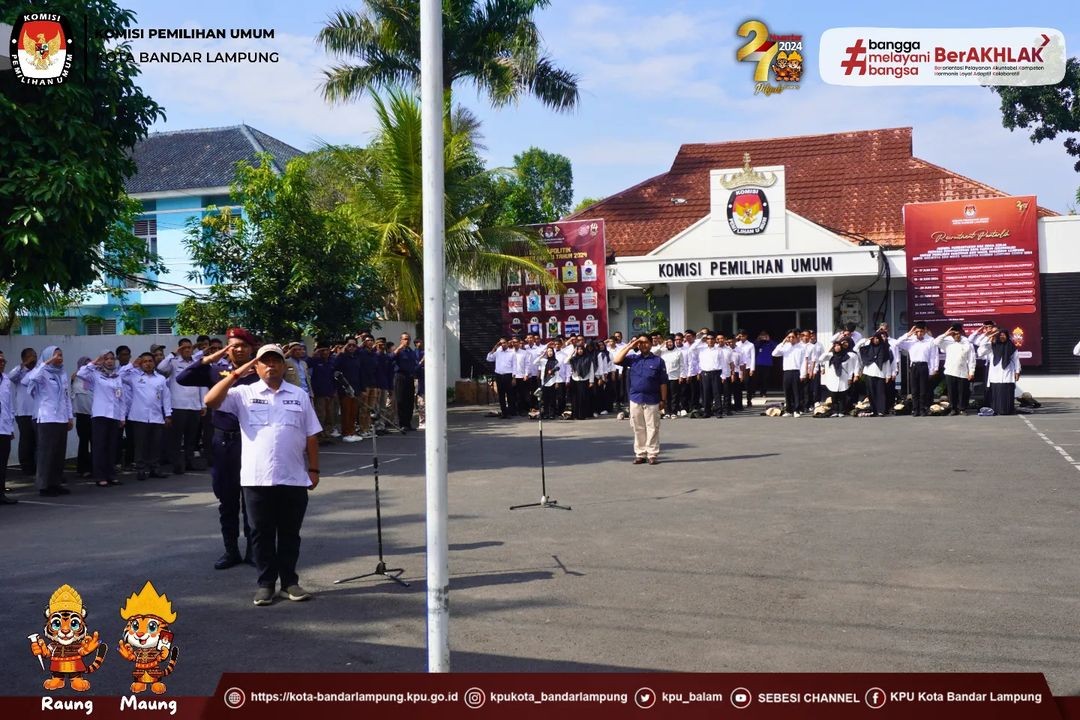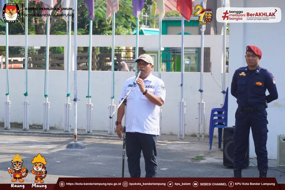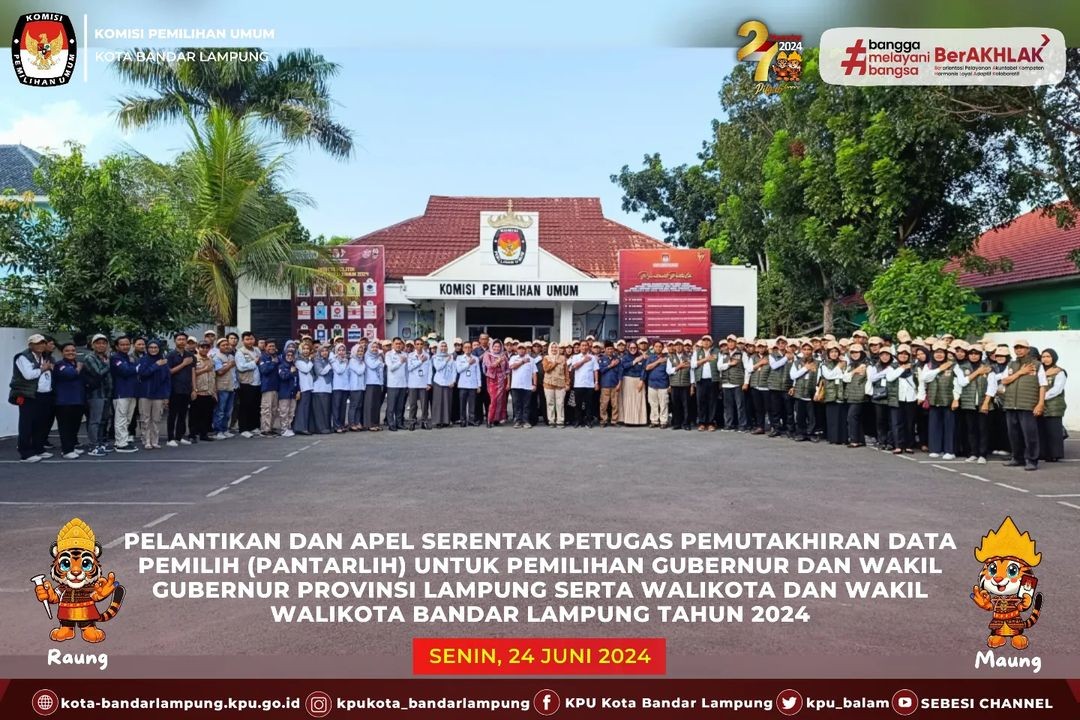 Komisi Pemilihan Umum Kota Bandar Lampung melaksanakan Pelantikan dan Apel Serentak Petugas Pemutakhiran Data Pemilih (Pantarlih) untuk Pemilihan Gubernur dan Wakil Gubernur Provinsi Lampung serta Walikota dan Wakil Walikota Bandar Lampung Tahun 2024 bertempat di halaman kantor KPU Kota Bandar Lampung. Senin, (24/06/24).