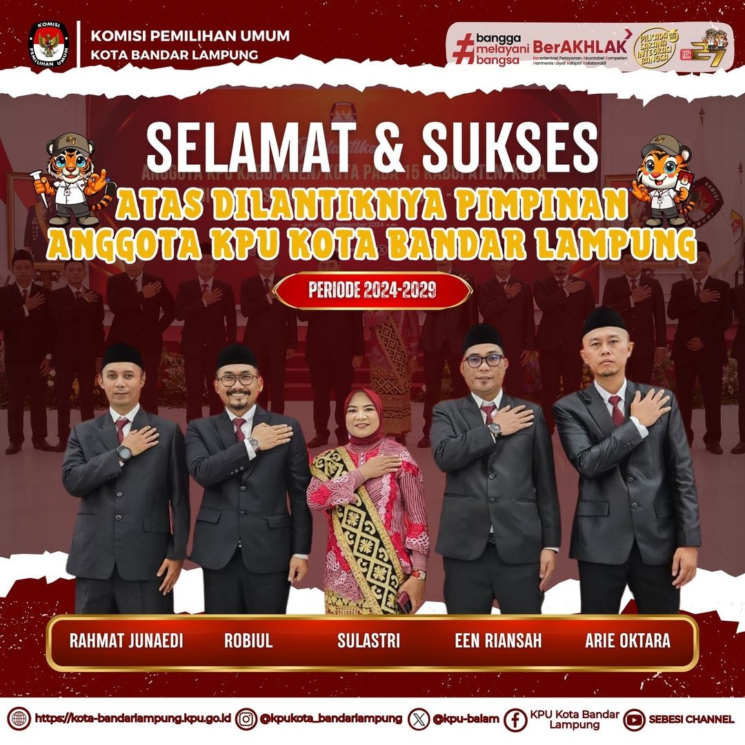 KPU Kota Bandar Lampung mengucapkan Selamat dan Sukses atas dilantiknya Pimpinan Anggota KPU Kota Bandar Lampung Periode 2024-2029.
