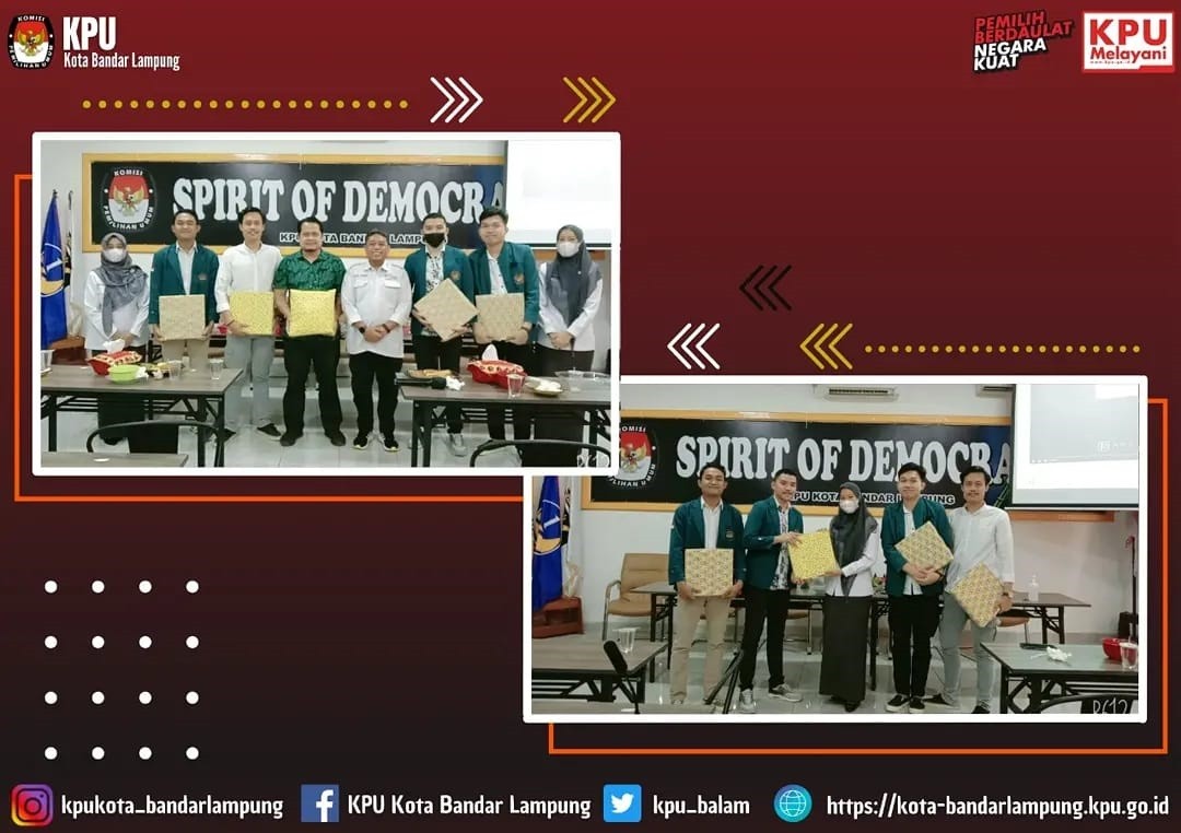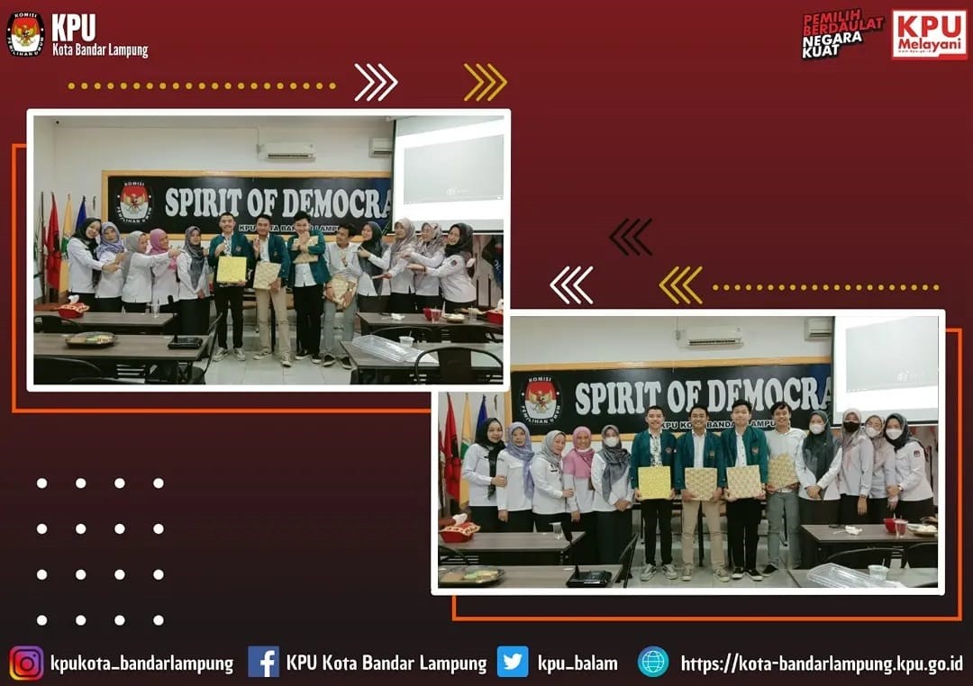 Pada kesempatan yang sama, perwakilan mahasiswa, Tedi turut menyampaikan pesan kesannya selama berada di Kantor KPU Kota Bandar Lampung, permohonan maaf dan ucapan terima kasih atas bimbingan ilmu dan kehangatan silaturahmi dari internal KPU yang sangat berguna bagi dirinya dan rekan rekan nya kelak ketika akan berhadapan langsung dengan dunia pekerjaan yang sesungguhnya.