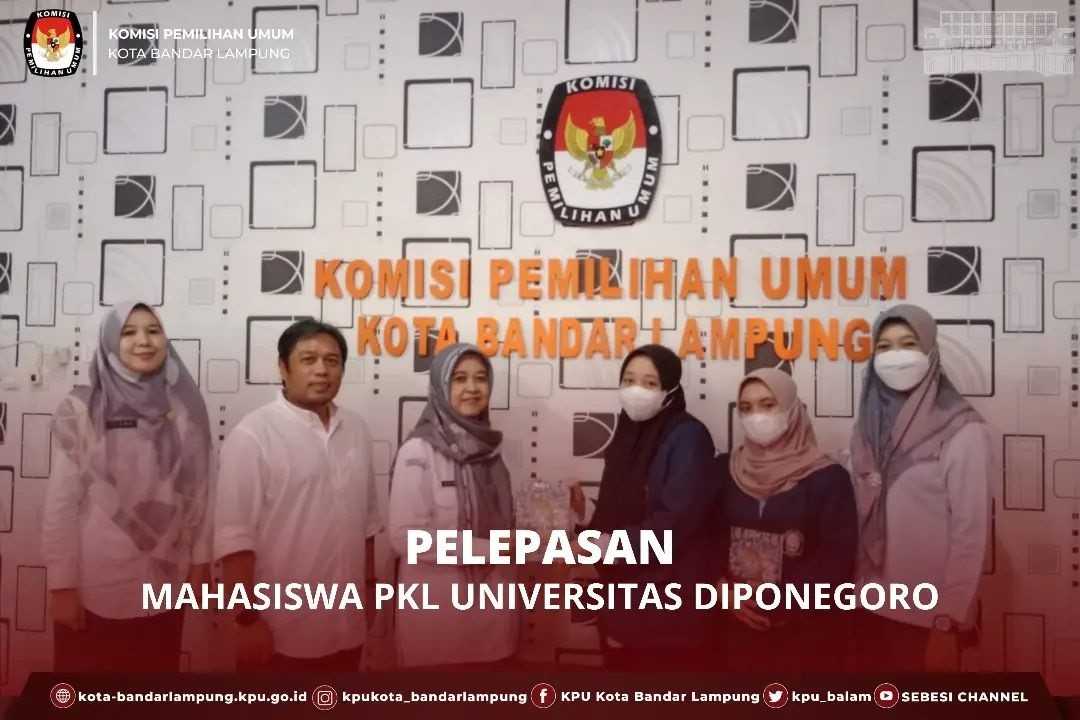 Kamis 21/7/2022, KPU Kota Bandar Lampung melaksanakan acara Pelepasan Mahasiswa PKL dari Universitas Diponegoro Semarang JawaTengah yang berkesempatan melaksanakan PKL di KPU Kota Bandar Lampung. Kegiatan ini dihadiri oleh Ketua KPU Kota Bandar Lampung, Sekretaris, jajaran Kasubbag, dan Mahasiswa PKL.