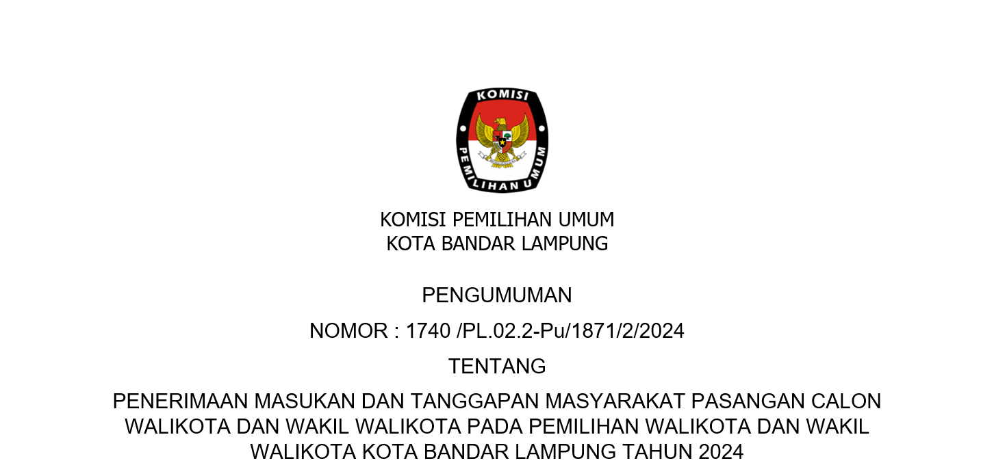 Penerimaan Masukan Dan Tanggapan Masyarakat Terhadap Pasangan Calon Walikota Dan Wakil Walikota Kota Bandar Lampung Tahun 2024