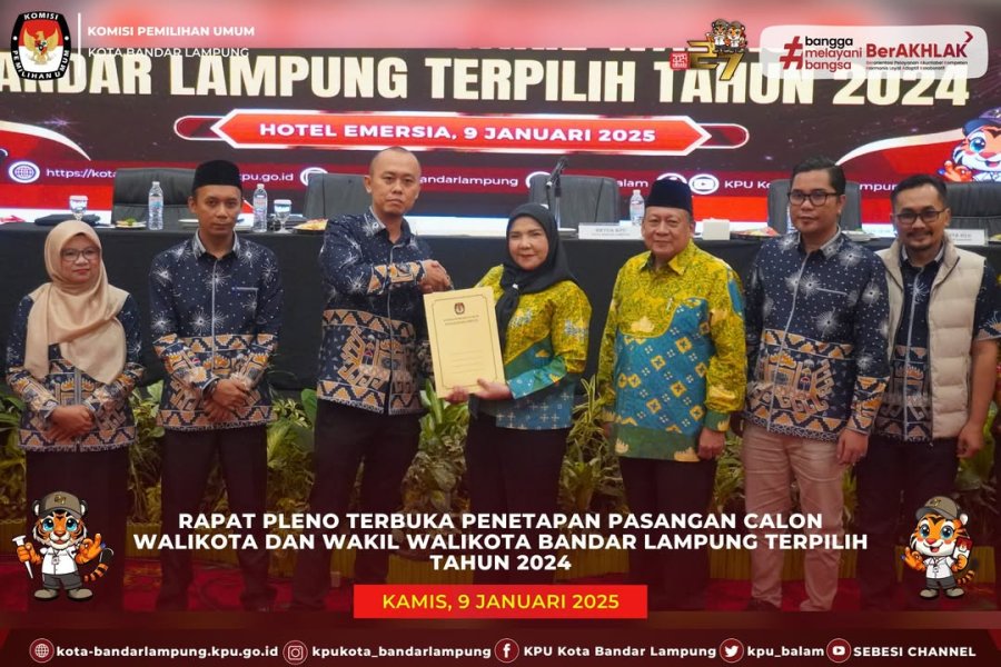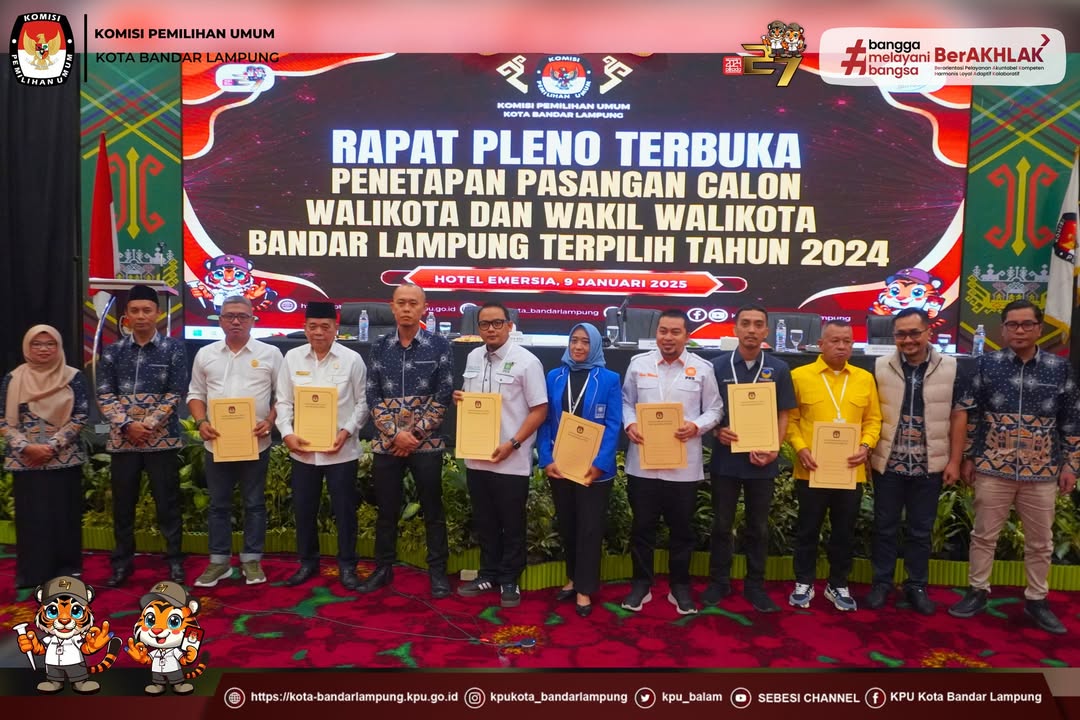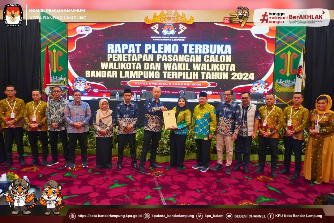 Penetapan Pasangan Calon Walikota dan wakil Walikota Bandar Lampung Terpilih Tahun 2024.