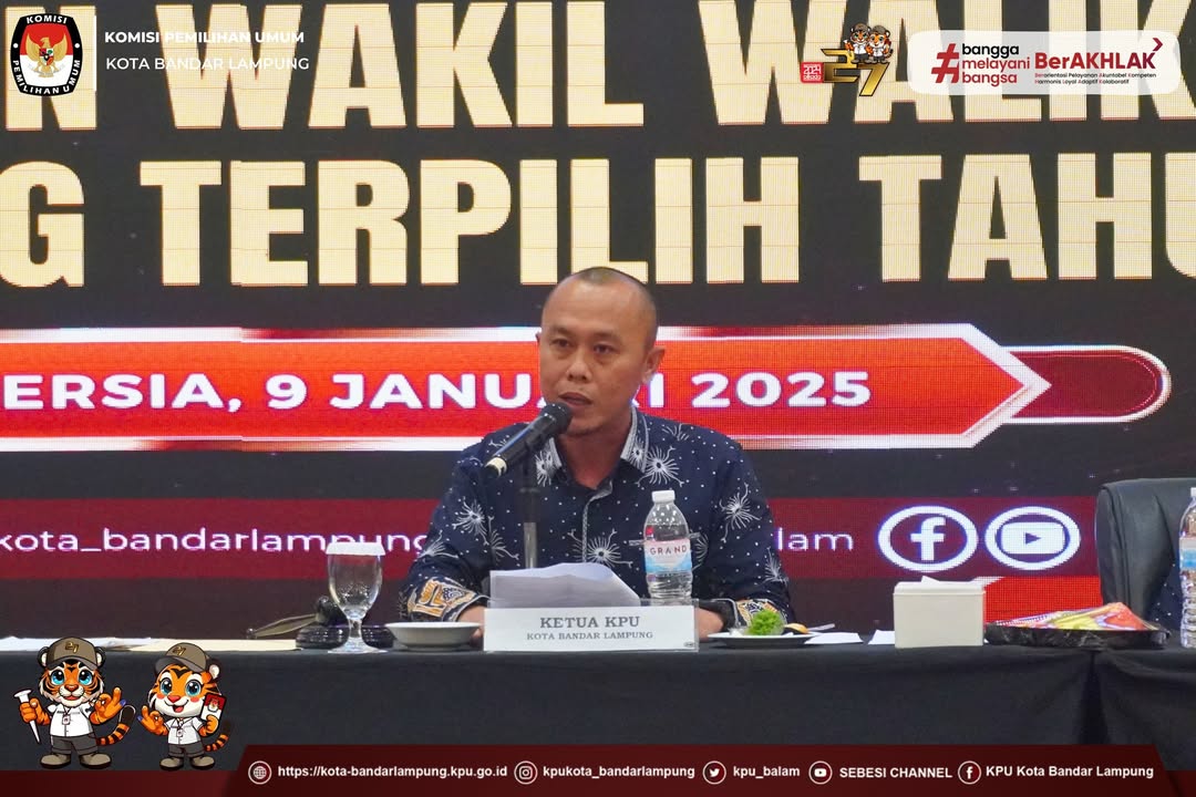 KPU Kota Bandar Lampung melaksanakan Rapat Pleno Terbuka Penetapan Pasangan Calon Walikota dan wakil Walikota Bandar Lampung Terpilih Tahun 2024. bertempat di Hotel Emersia, Kamis (09/01/25).