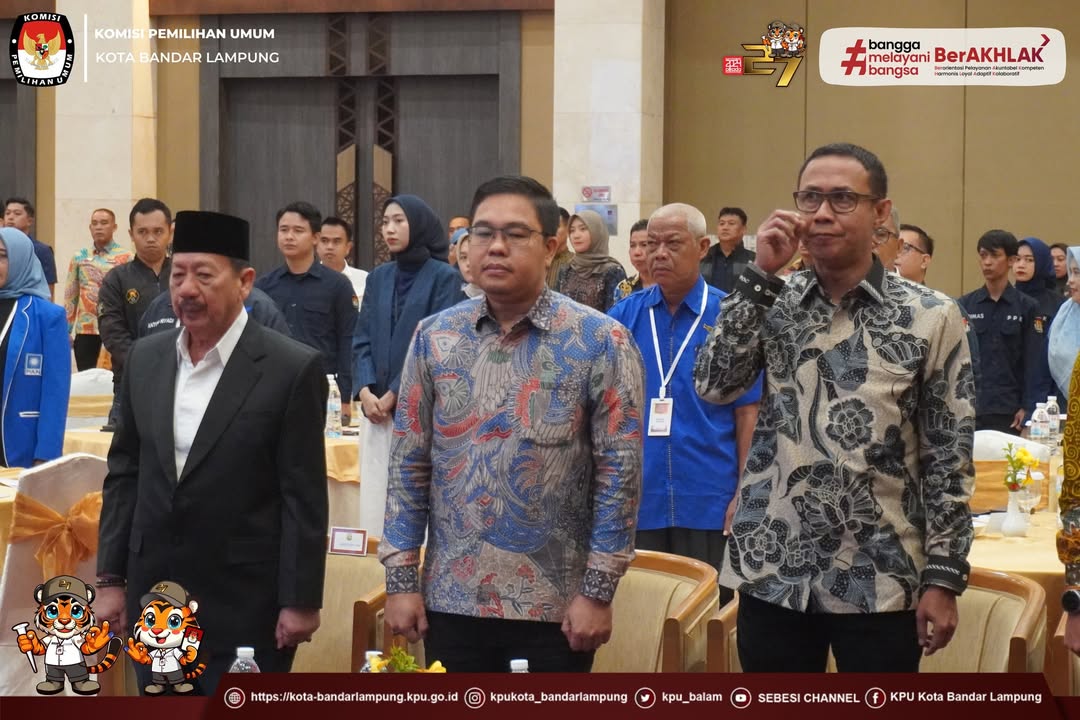 Hadir dalam Rapat Ketua KPU Provinsi Lampung, Erwan Bustami, Anggota Bawaslu Provinsi Lampung, DPRD Kota Bandar Lampung, Ketua dan Anggota Bawaslu Kota Bandar Lampung, Polresta Bandar Lampung, Dandim 0410 Bandar lampung, Kaban Kesbangpol Kota Bandar Lampung, Kejaksaan Negeri Kota Bandar Lampung, Pengadilan Negeri Tanjung Karang, Perwata dan PPK se-kota Bandar Lampung.
