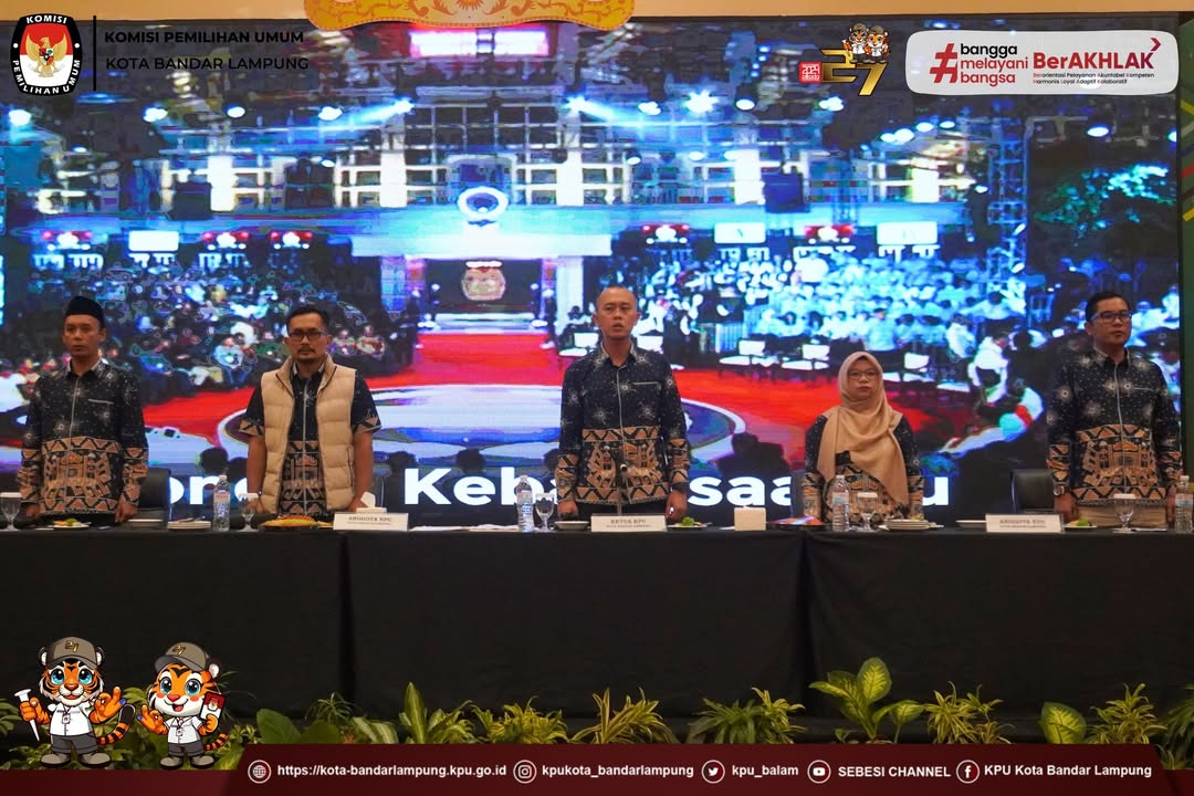 Rapat Pleno Terbuka dibuka oleh Ketua KPU Kota Bandar Lampung, Arie Oktara dan di dampingi oleh anggota KPU Kota Bandar Lampung Een Riansah, Rahmat Junaedi, Robiul dan Sulastri.