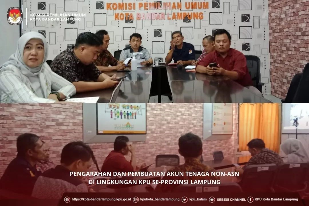 Jumat, 23 September 2022 , Pukul 14.00 Wib KPU Kota Bandar Lampung mengikuti Kegiatan Pengarahan dan Pembuatan Akun Tenaga Non-ASN di Lingkungan KPU Provinsi Lampung.