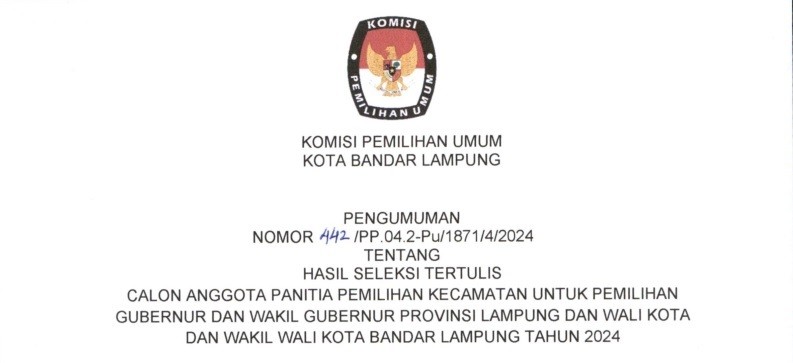 Pengumuman Hasil Seleksi Tertulis Calon Anggota PPK PILKADA 2024