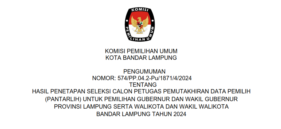 Pengumuman Penetapan Seleksi Petugas Pemutakhiran Data Pemilih (PANTARLIH) PILKADA 2024
