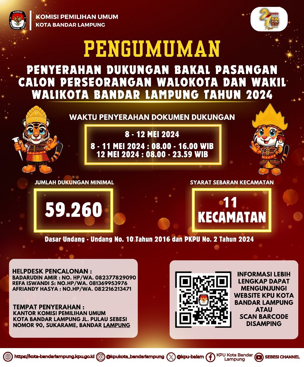 Pengumuman Penyerahan Dukungan Pasangan Bakal Calon Perseorangan Walikota & Wakil Walikota Tahun 2024