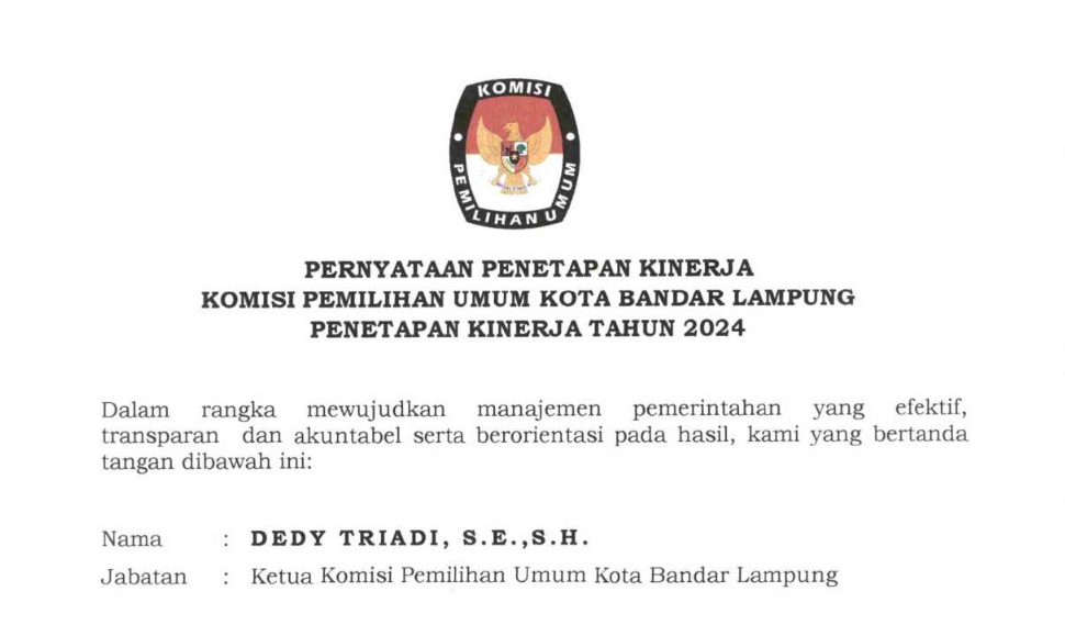 PERJANJIAN KINERJA KPU KOTA BANDAR LAMPUNG 2024 (Pak Amrozie)