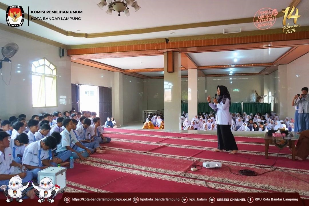Anggota KPU/Ketua Divisi Perencanaan Data dan Informasi KPU Kota Bandar Lampung, Ika Kartika, M.Pd menjadi narasumber dalam Kegiatan Projek Penguatan Profil Pelajar Pancasila (P5) SMAN 1 Bandar Lampung, Kamis (05/10/2023). Kegiatan ini Bertemakan Suara Demokrasi dan mengangkat topik "Satu Suara untuk Perubahan".