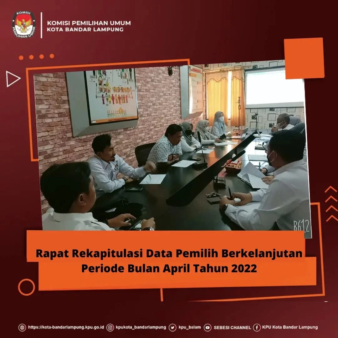 Senin 25/04 KPU Kota Bandar Lampung melaksanakan Rapat Internal Rekapitulasi Data Pemilih Berkelanjutan Periode Bulan April Tahun 2022.