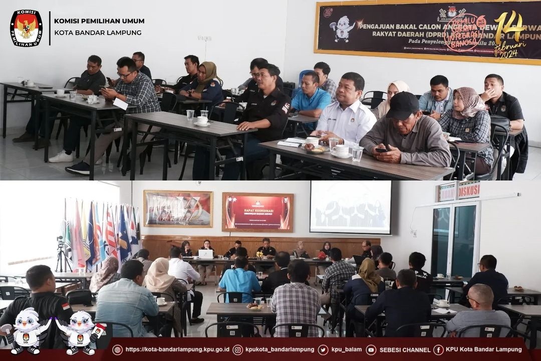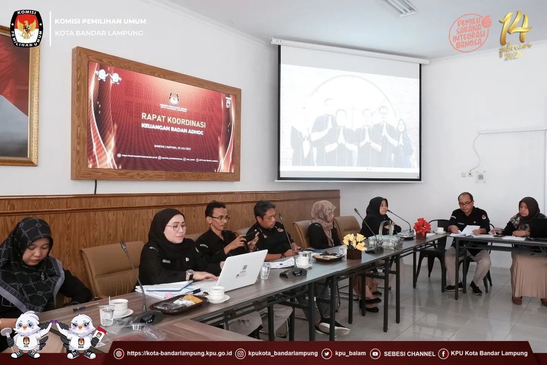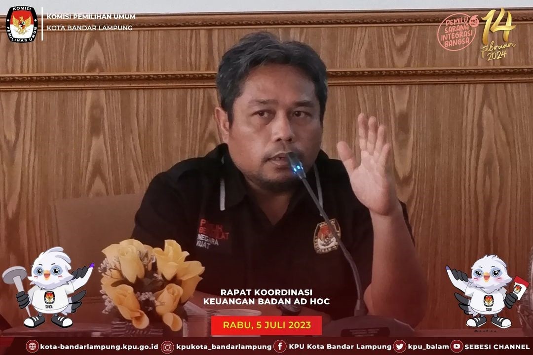 KPU Kota Bandar Lampung melaksanakan rapat koordinasi Badan Adhoc, Rabu, 5 Juli 2023, di aula kantor KPU setempat.