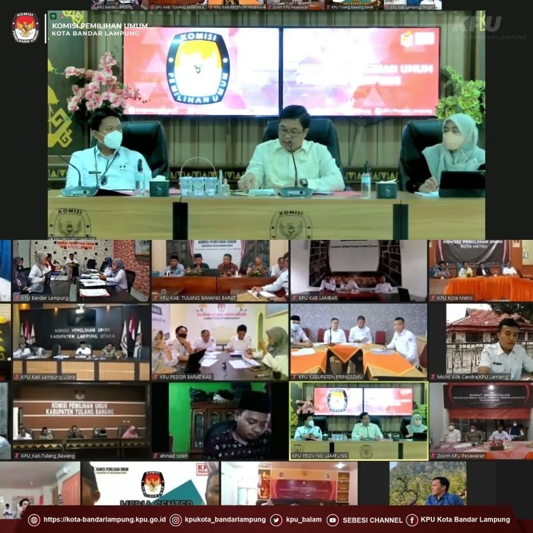 Rapat koordinasi tersebut diselenggarakan oleh KPU provinsi Lampung dan diikuti secara daring oleh seluruh satker KPU kab/kota se-Provinsi Lampung.