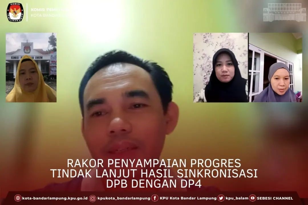 Sabtu 25/06/22 KPU Kota Bandar Lampung Mengikuti Rapat Koordinasi Penyampaian Progres Tindak Lanjut Hasil Sinkronisasi DPB (Daftar Pemilih Berkelanjutan) dengan DP4 (Daftar Penduduk Potensial Pemilih Pemilihan) yang diselenggarakan secara daring oleh KPU Provinsi Lampung dan di ikuti oleh 15 satker KPU Kab/Kota Se-Provinsi Lampung.