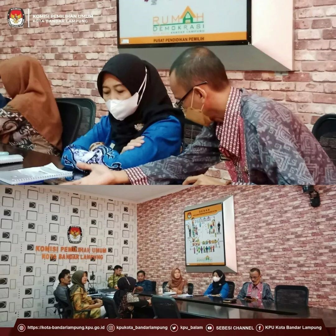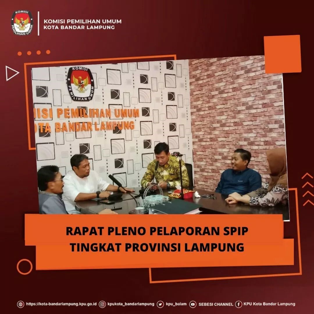 KPU Kota Bandar Lampung, Jum'at 13 Mei 2022 mengikuti Rapat Pleno pelaporan SPIP Tingkat Provinsi secara daring melalui zoom meeting bertempat diruang rapat KPU Kota Bandar Lampung. Rapat dibuka oleh Ketua KPU Provinsi Lampung Erwan bustami. Selanjutnya , rapat pleno SPIP diimpin oleh Ketua Divisi Hukum dan pengawasan M. Tio Aliansyah.