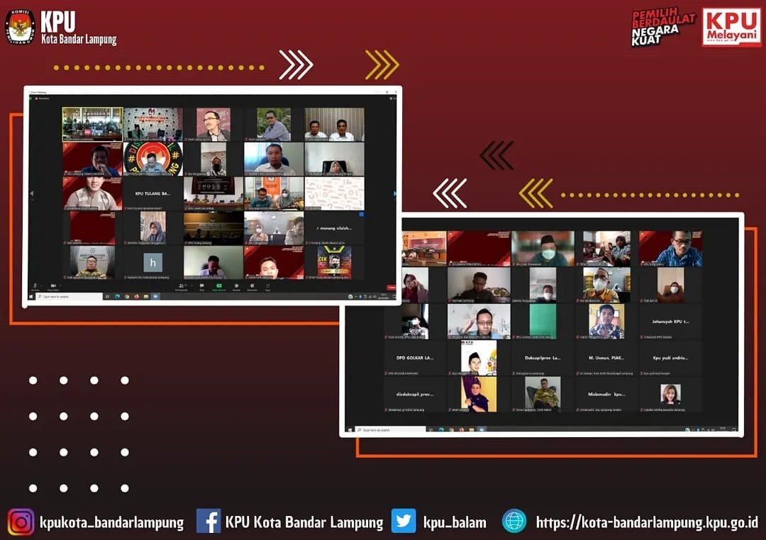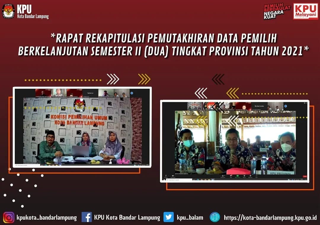Kamis, 30/12 KPU Kota Bandar Lampung mengikuti Rapat Rekapitulasi Data Pemilih Berkelanjutan Semester II Tahun 2021 yang digelar oleh KPU Provinsi Lampung secara luring (Ketua dan Sekretaris KPU 15 Kab/Kota Se-Provinsi Lampung) dan secara daring (Anggota KPU Kab/Kota Se-Provinsi Lampung).