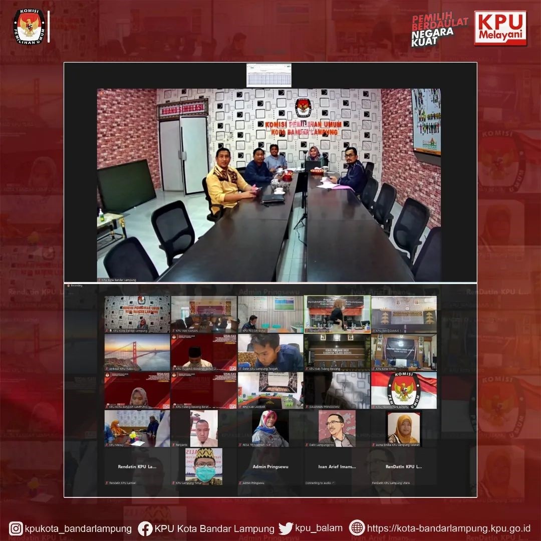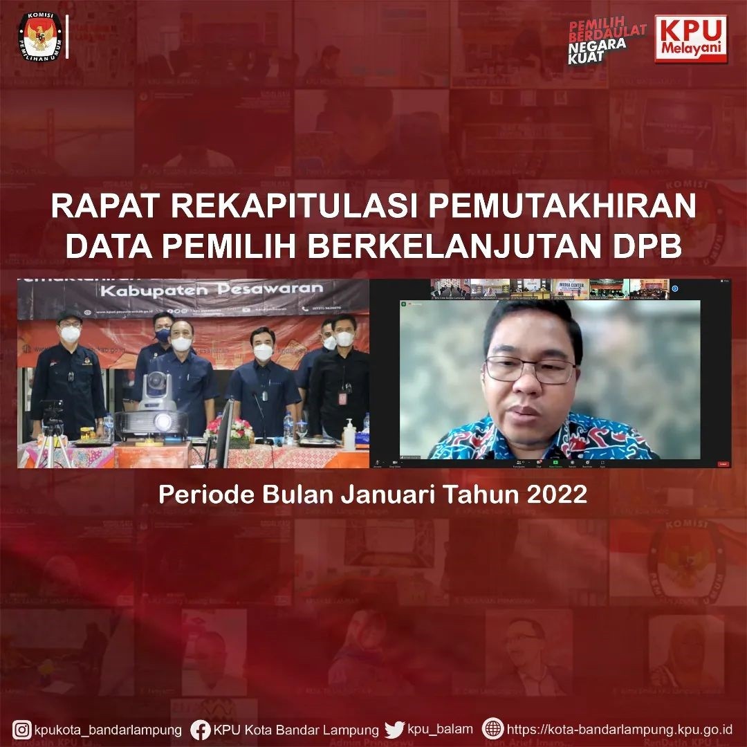 Selasa 08/02/22 KPU Kota Bandar Lampung mengikuti kegiatan Rapat Rekapitulasi Data Pemilih Berkelanjutan Tingkat Provinsi Lampung Periode Bulan Januari Tahun 2022. Rapat ini diselenggarakan secara daring oleh KPU Provinsi Lampung dan di ikuti oleh seluruh satker KPU Kab/Kota Se-Provinsi Lampung.