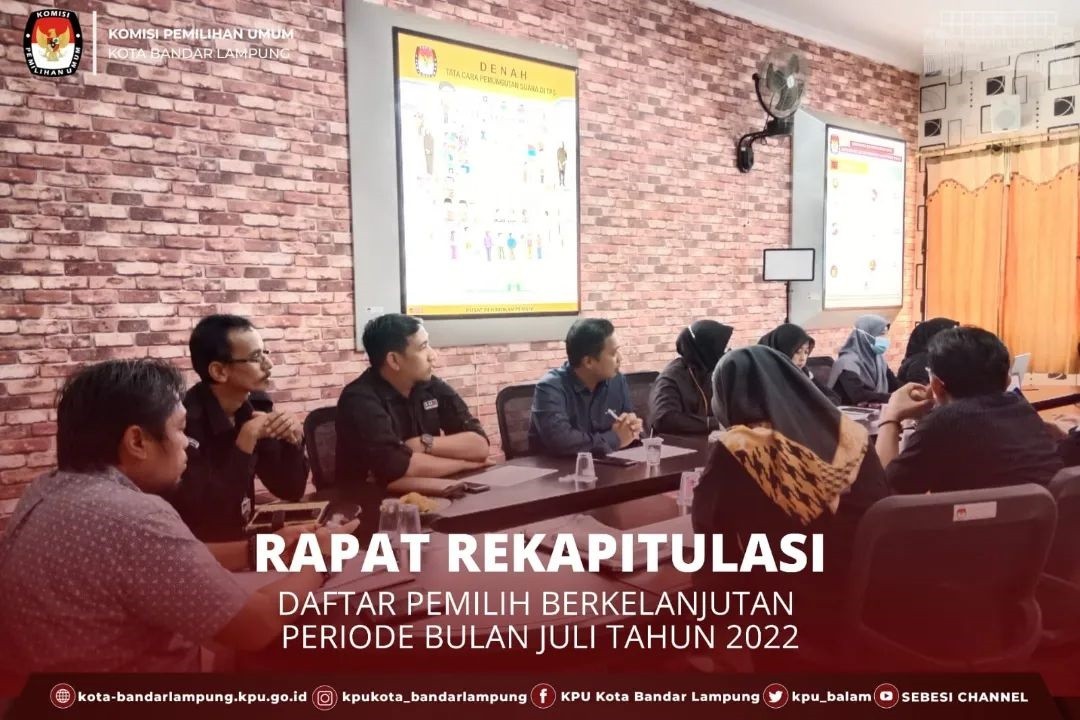 Rabu 03 Agustus 2022 KPU Kota Bandar Lampung melaksanakan Rapat Rekapitulasi Internal Daftar Pemilih Berkelanjutan Periode Bulan Juli Tahun 2022.