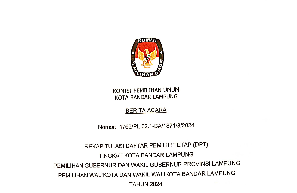 Rekapitulasi Daftar Pemilih Tetap Kota Bandar Lampung Pada PILKADA 2024