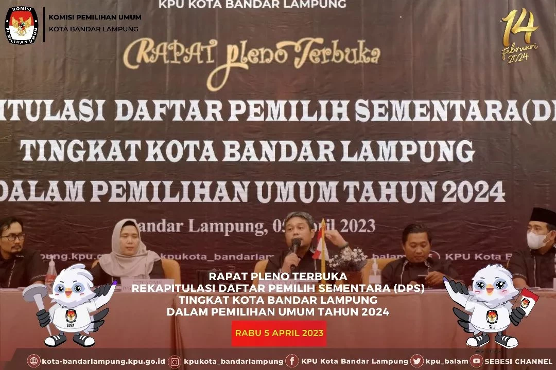 Dalam kegiatan rapat pleno terbuka rekapitulasi daftar pemilih sementara tingkat kota itu, PPK membacakan hasil rekapitulasi daftar pemilih sementara (DPS) tingkat Kota Bandar Lampung tahun 2023 pada penyelenggaraan pemilu tahun 2024.