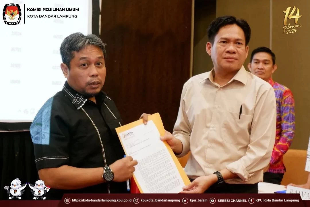 Agenda tersebut turut dihadiri partai politik peserta Pemilu 2024, Forkopimda, dan Panitia Pemilihan Kecamatan (PPK) se-Kota Bandar Lampung.