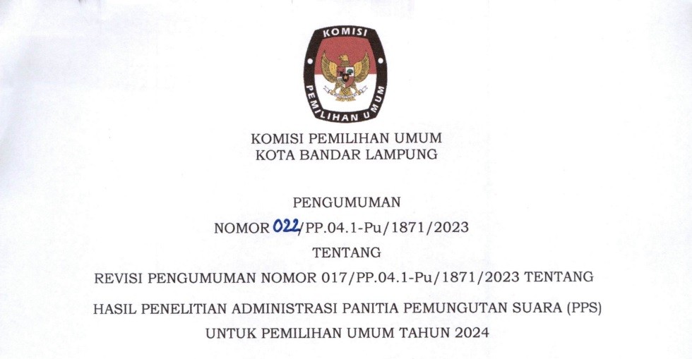 Revisi Pengumuman Hasil Penielitian Administrasi Calon PPS Pemilu Tahun 2024