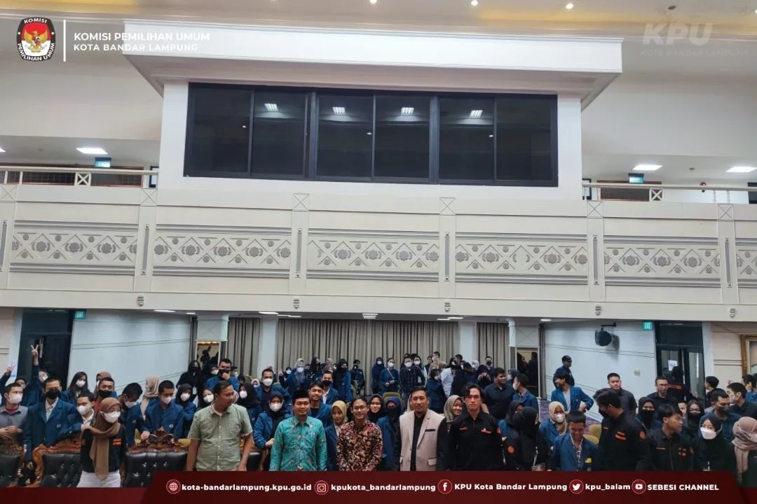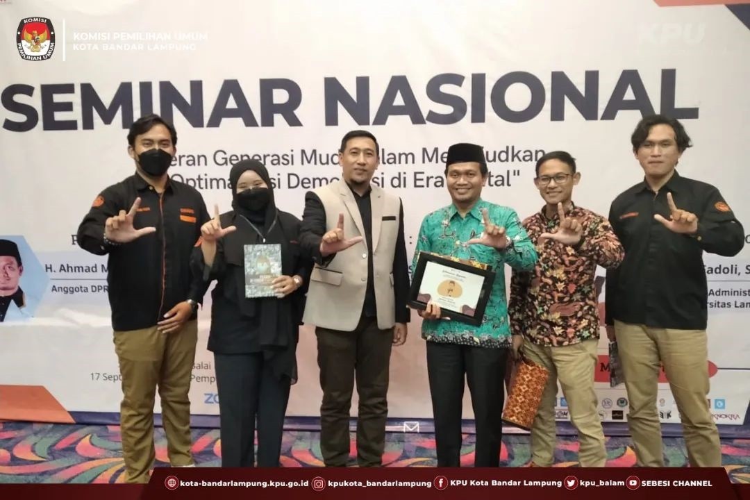 KPU Kota Bandar Lampung yang diwakili oleh Feri Triatmojo menghadiri acara Seminar Nasional Bertajuk Peran Generasi Muda dalam mewujudkan Optimalisasi Demokrasi di era digital. Kegiatan yang diselenggarakan oleh HIMAGARA FISIP UNILA ini bertempat di Balai Keratun Provinsi Lampung, Sabtu (17/9/2022). Feri Triatmojo hadir sebagai salah satu Narasumber pada kegiatan ini. Feri mengampaikan berbagai pandangannya terkait data dan fakta lapangan tentang Pemilih Millenial. Kegiatan diakhiri dengan Foto bersama.