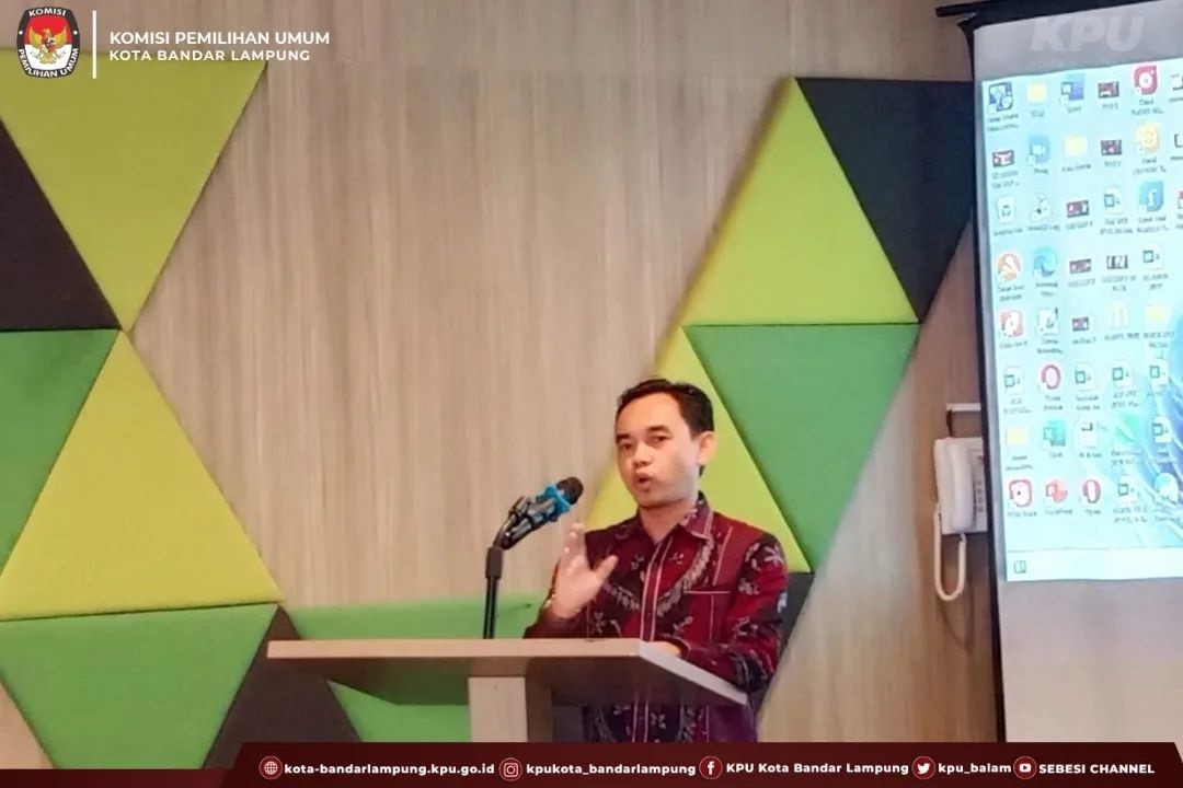 Hadir dalam kesempatan tersebut Anggota KPU provinsi Lampung Agus Riyanto untuk membuka acara kegiatan dan memberikan pengarahan terkait Tahapan verfikasi Parpol. Dilanjutkan dengan penyampaian materi dari Ketua KPU Kota Bandar Lampung Dedy Triyadi, Ketua divisi Teknis Penyelenggara Pemilu Fery Triatmojo, dan Ketua Divisi Perencanaan, data, dan informasi Ika Kartika.