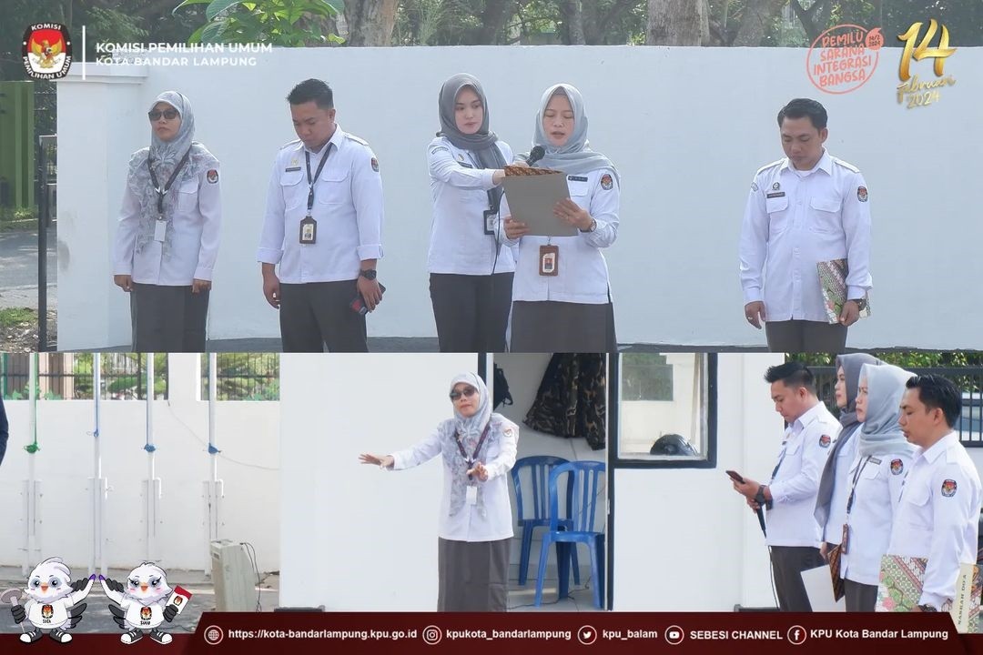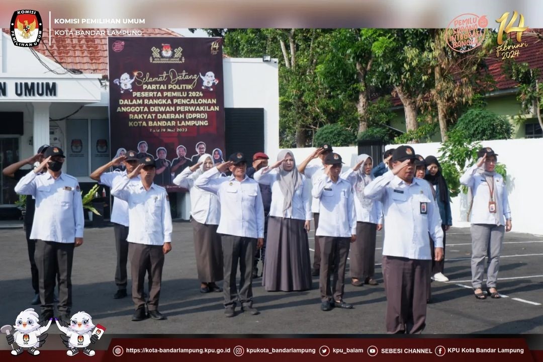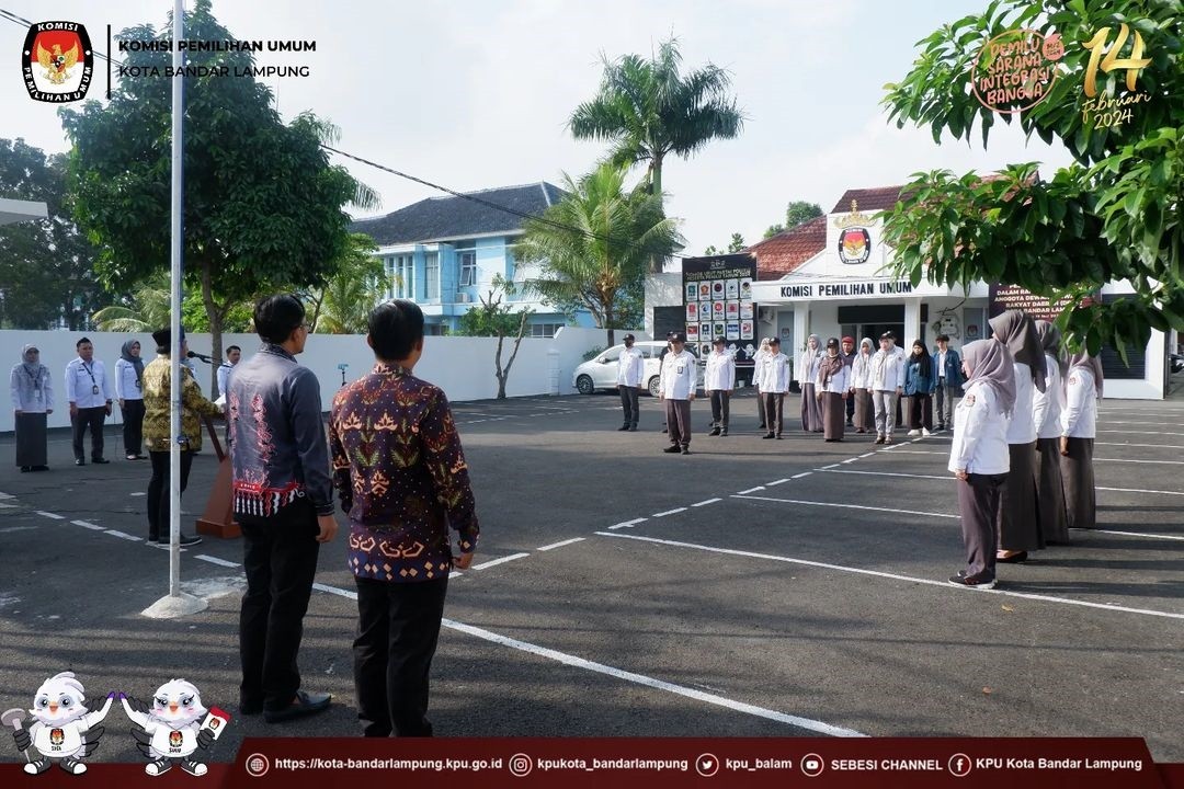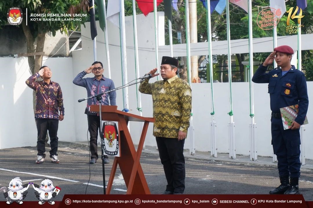 Dedy Triyadi, selaku Ketua KPU Kota Bandar Lampung bertindak sebagai Inspektur Upacara pagi ini. Ia membacakan sambutan dari Plt. Menteri Komunikasi dan Informatika Republik Indonesia, Mahfud MD.